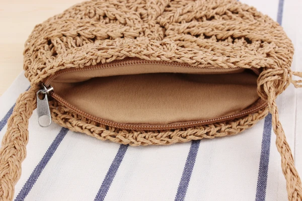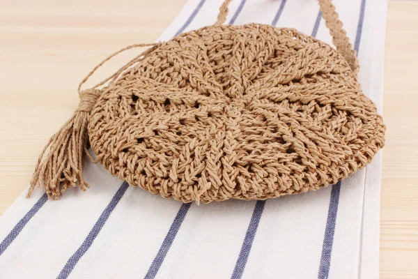 Плетеная круглая Женская Плетеная соломенная сумка из ротанга, Вязаная летняя пляжная сумка