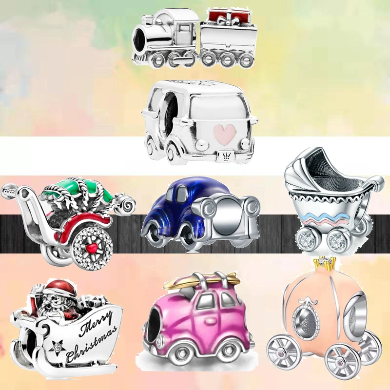 Новинка, милая подвеска в виде мотоцикла, тыквы, автомобиля, детской кареты, поезда, подходит для браслета Pandora с подвесками сделай сам, женские оригинальные бусины, оптовая продажа, на заказ