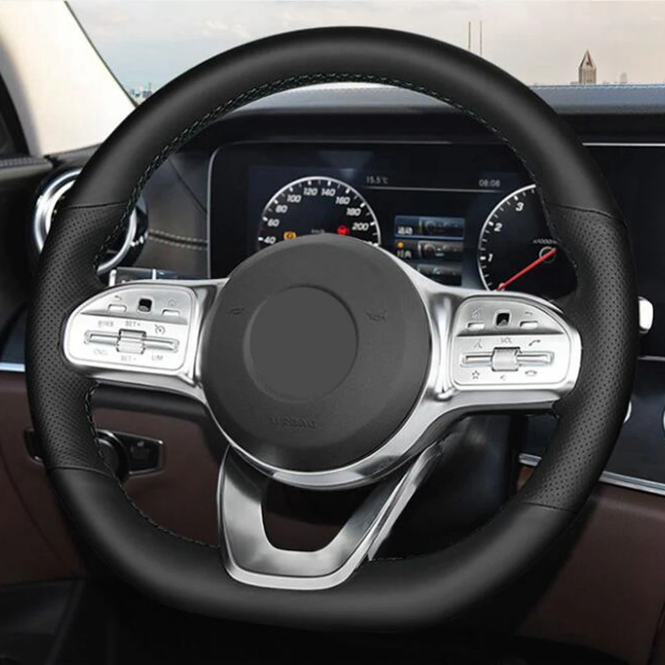 Черная искусственная кожа Чехол рулевого колеса автомобиля для Merc...