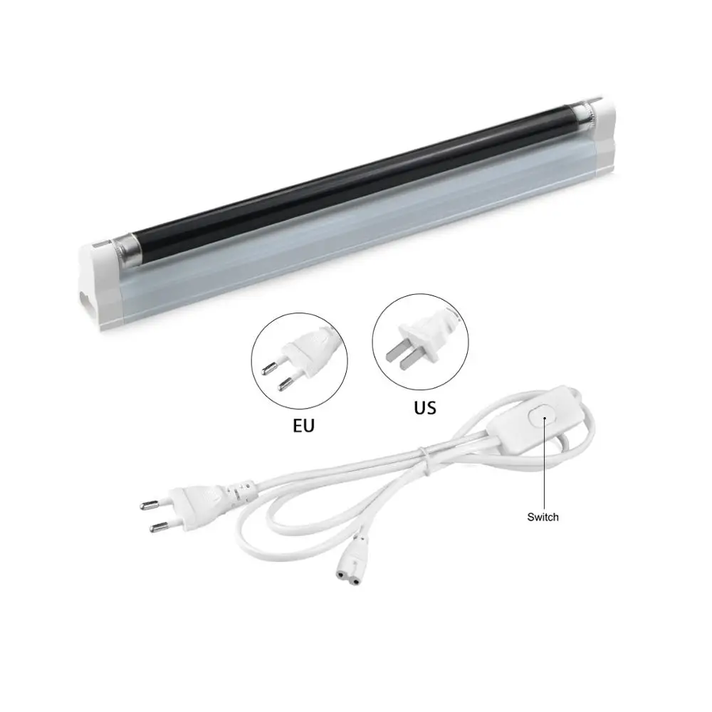Тип: ультрафиолетовые лампы UVA Цвет излучения: фиолетовый Материал кронштейна: алюминиевый кронштейн Напряжение: 110 В/220 В Мощность: 6 Вт/8 Вт Тип лампы: T5 (G5) Длина волны: 320nm-400nm Тип стеклянной лампы: круглая трубка Длина: прибл. 235 (мм)/310 (мм)