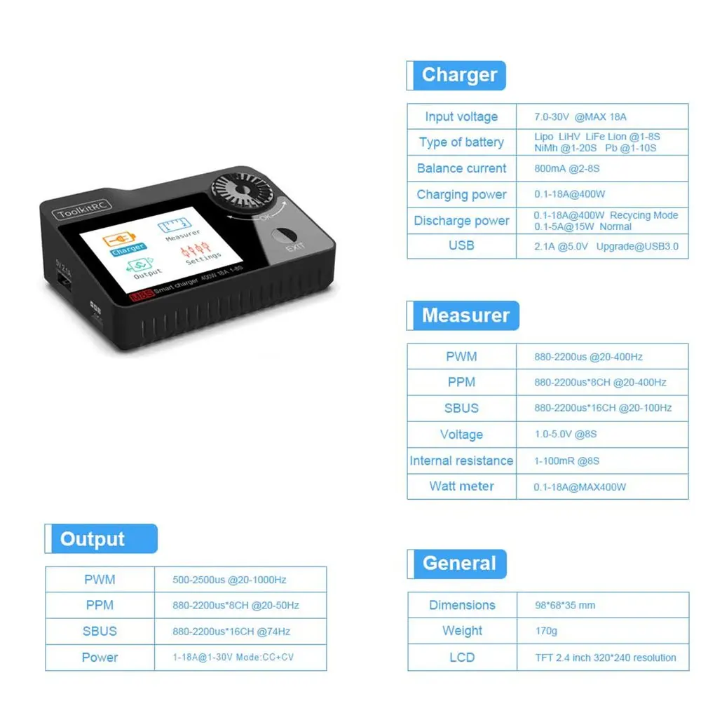 ToolkitRC M6 мини батарея баланс зарядное устройство клетчатый серво тестер 150 Вт 10A Выход постоянного тока для 1-6S Lipo LiHV жизни Лев NiMh Pb