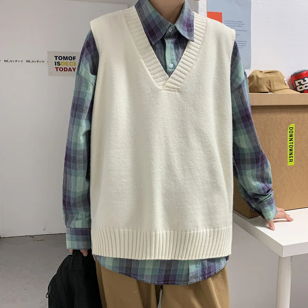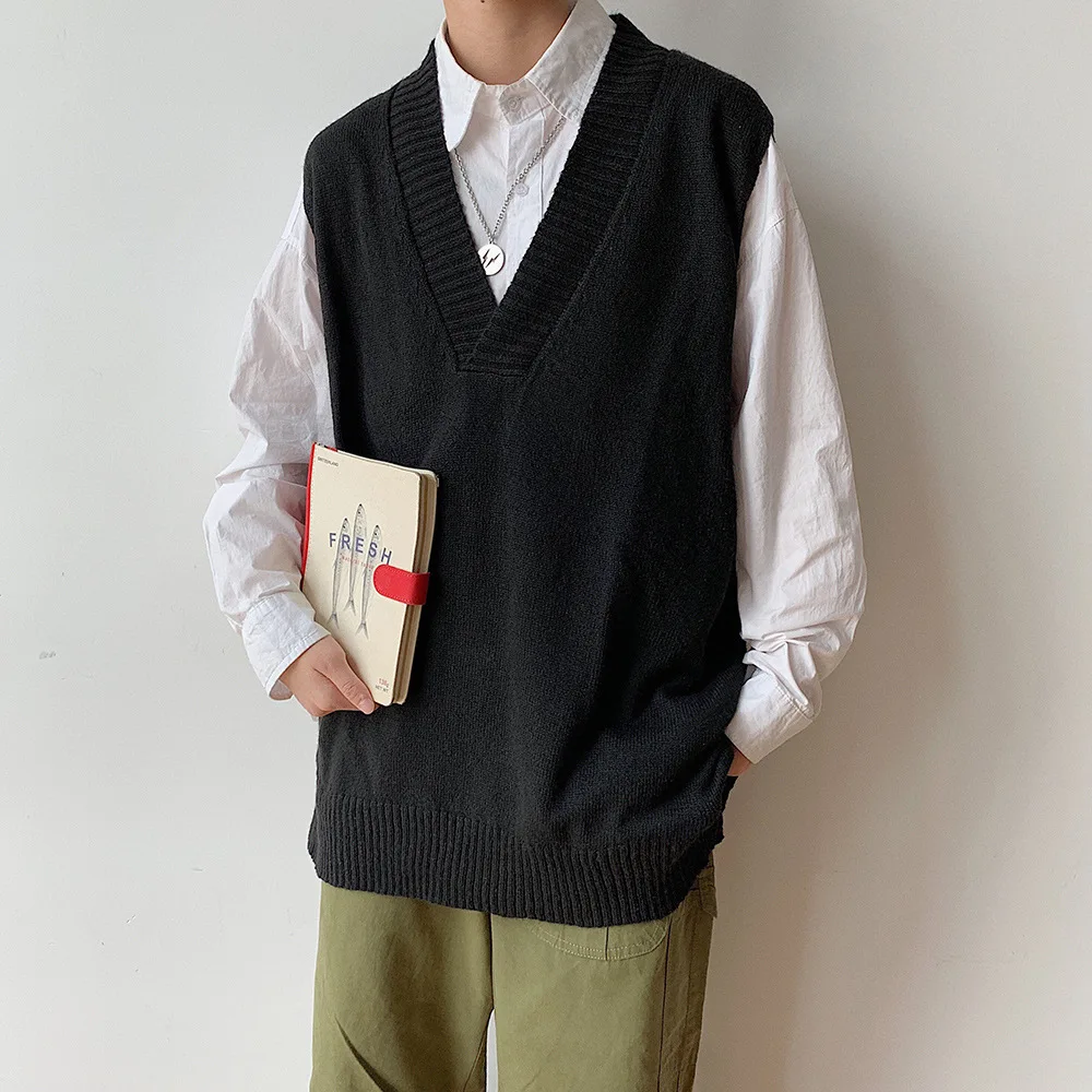 Жилет Мужской трикотажный с V-образным вырезом, Модный повседневный...