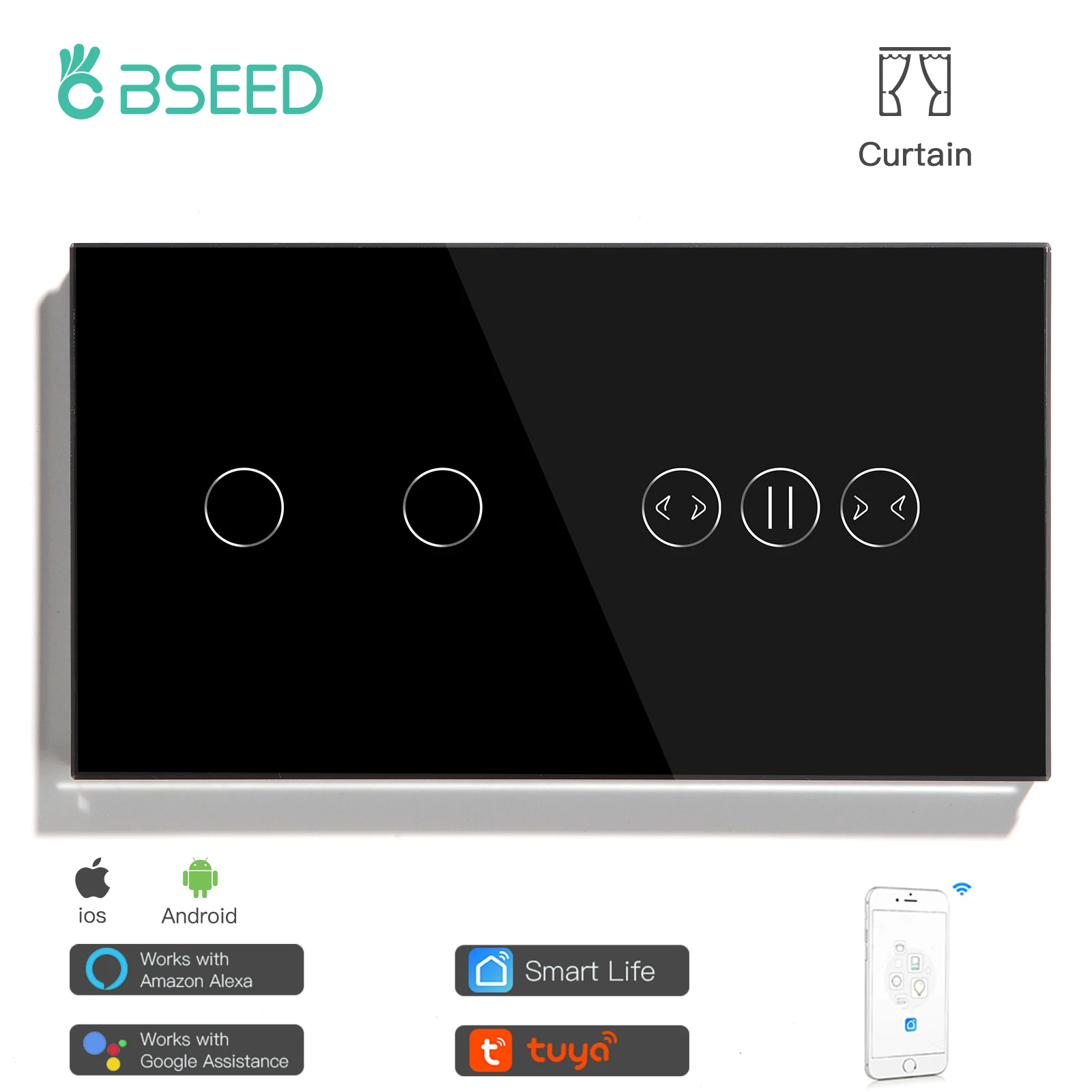 Bseed Mvava стандарт ЕС умный Wifi сенсорный выключатель 2 банды с занавеской работа с Tuya Google умный дом Кристальное стекло панель