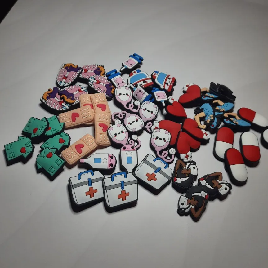50 шт., медицинские талисманы для обуви, клинический термометр, стетоскоп, украшение для обуви в форме сердца, аксессуары для обуви, украшения