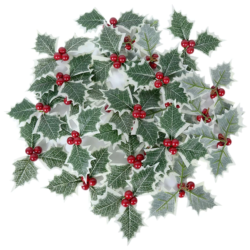 510 шт. зеленые листья падуба и красные ягоды Падуба, Золотая вишня...