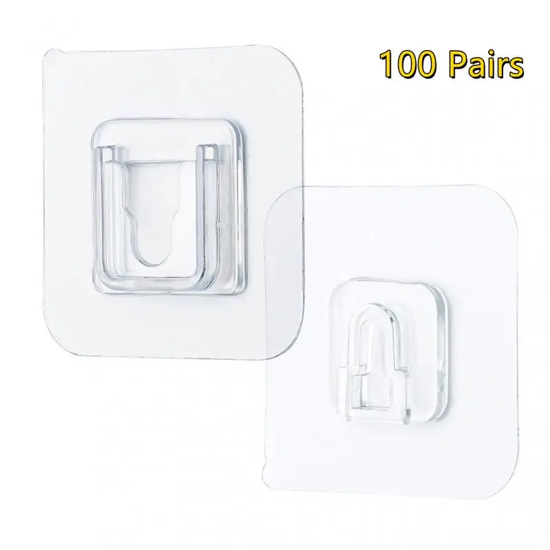 Двухсторонние клейкие настенные крючки, прочный самоклеящийся прозр...