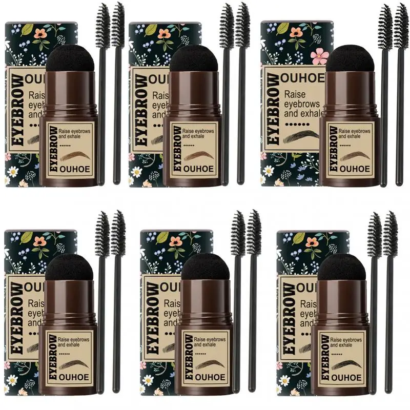 Штамп для бровей ELECOOL, формирование макияжа, контур, водостойкая пудра для бровей, натуральный карандаш для бровей, линия волос, коричневый, черный, комплект из 6 цветов