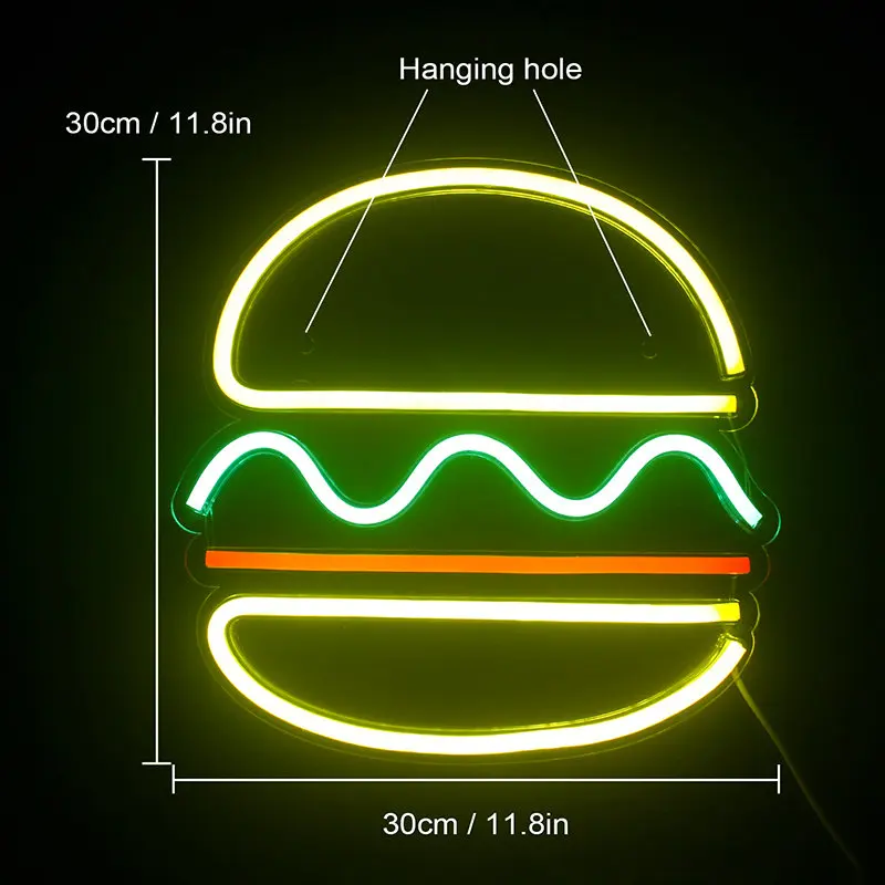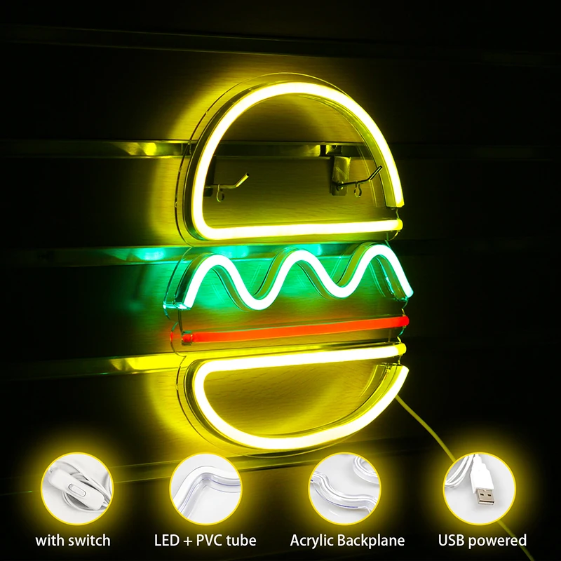 Wanxing неоновая светильник ка в форме гамбургера, акриловая настенная неоновая вывеска для фаст-фуда вечерние вечеринки для свадьбы, магазина, ресторана, дня рождения, украшение для дома