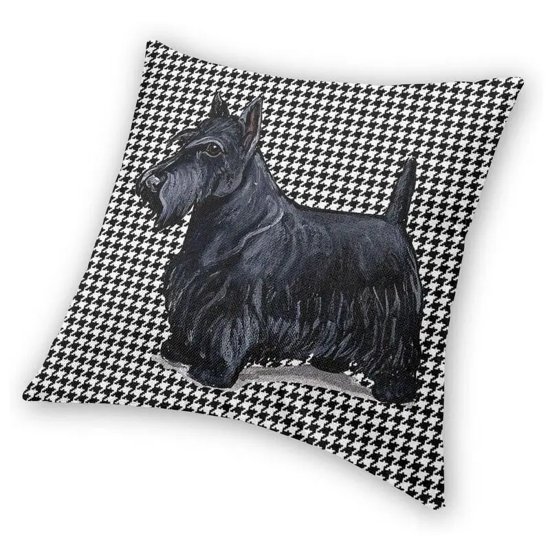 Шотландская терьерская твидовая клетчатая квадратная подушка с принтом в клетку, квадратная подушка, чехол для домашнего декора, наволочка для подушки в виде Скотти, собаки, диванная подушка