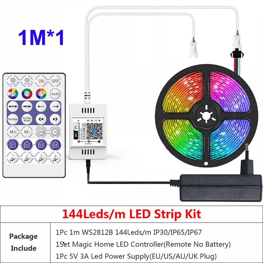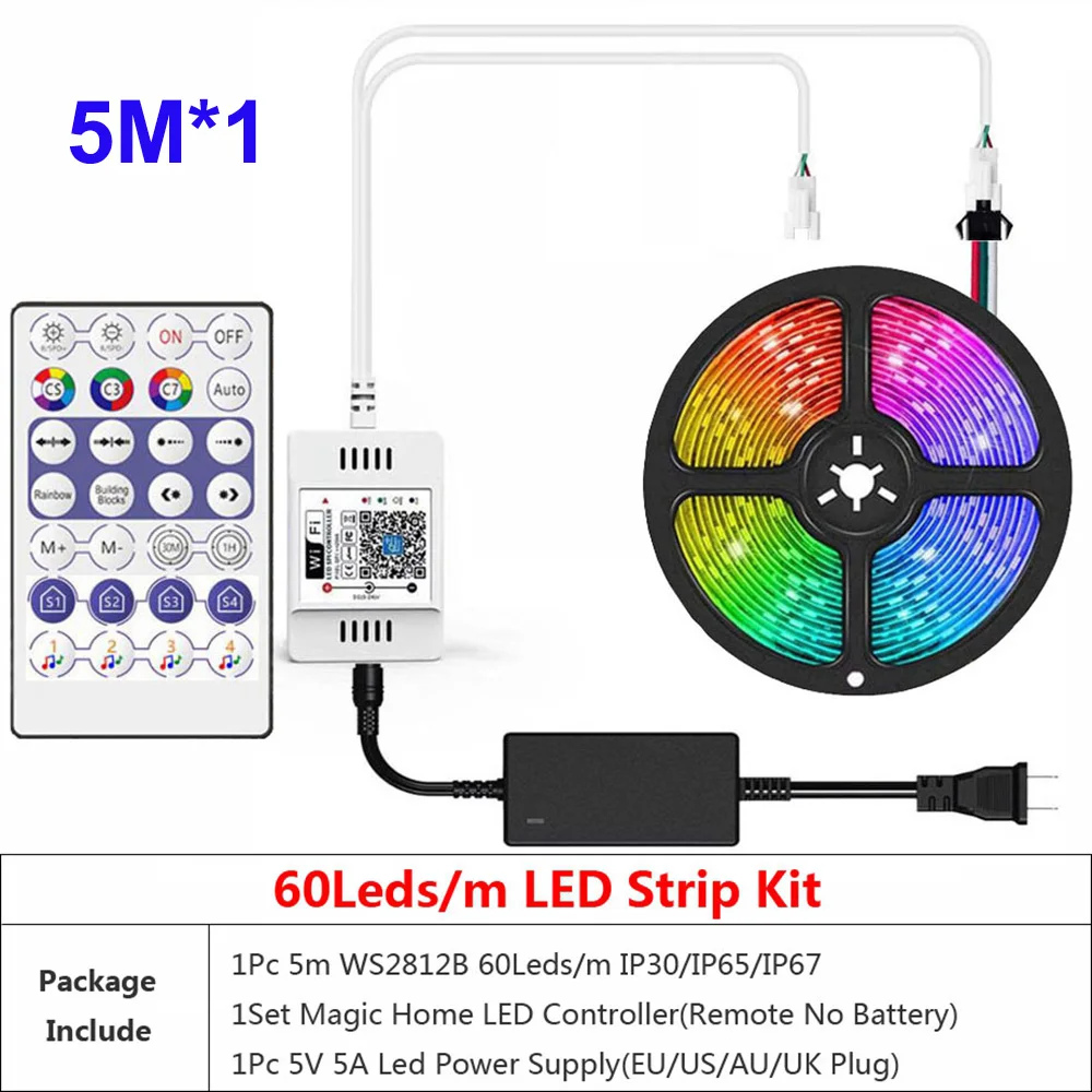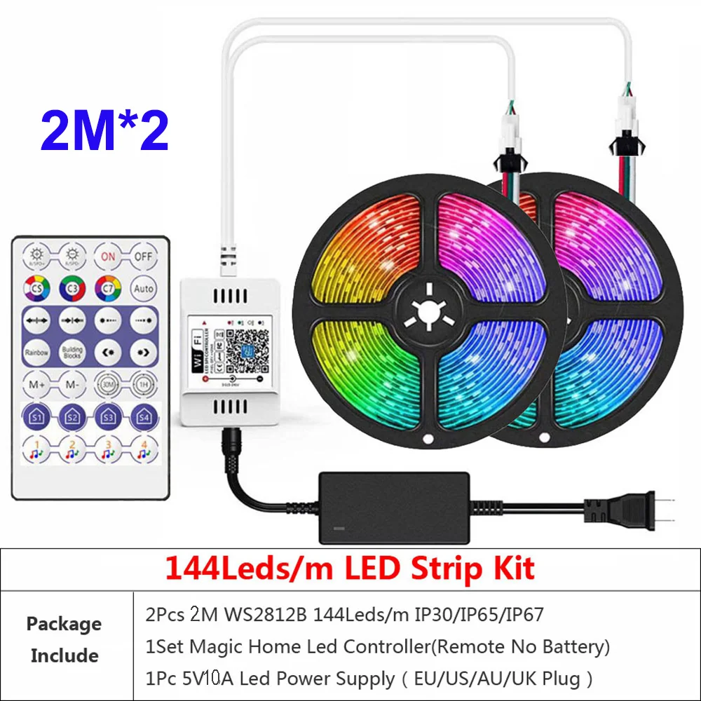 Светодиодная лента RGB WS2812B 5 в постоянного тока с адресным пикселем, пульт дистанционного управления Wi-Fi, двойной выход, комплект питания, интеллектуальный музыкальный адаптер App