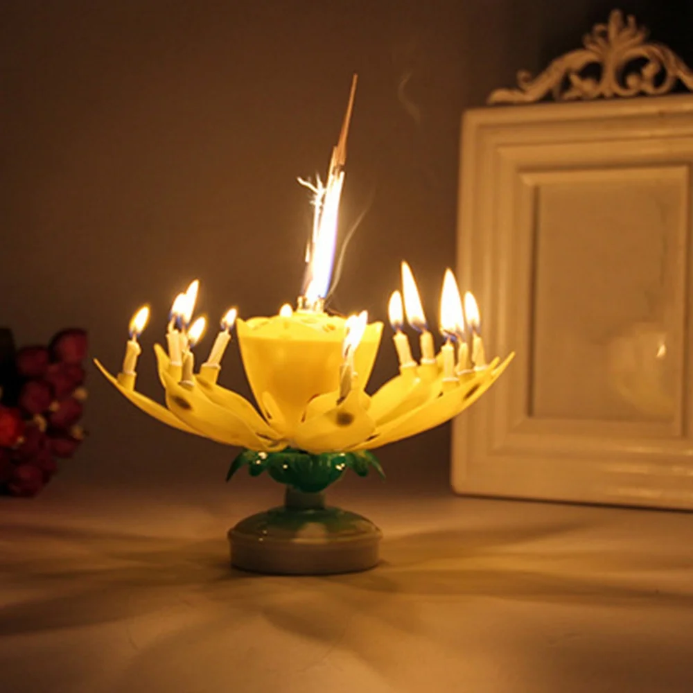Многоцветная вращающаяся Свеча в форме цветка лотоса, музыкальная Свеча сделай сам, украшение для вечерние та на свадьбу, день рождения, подарок