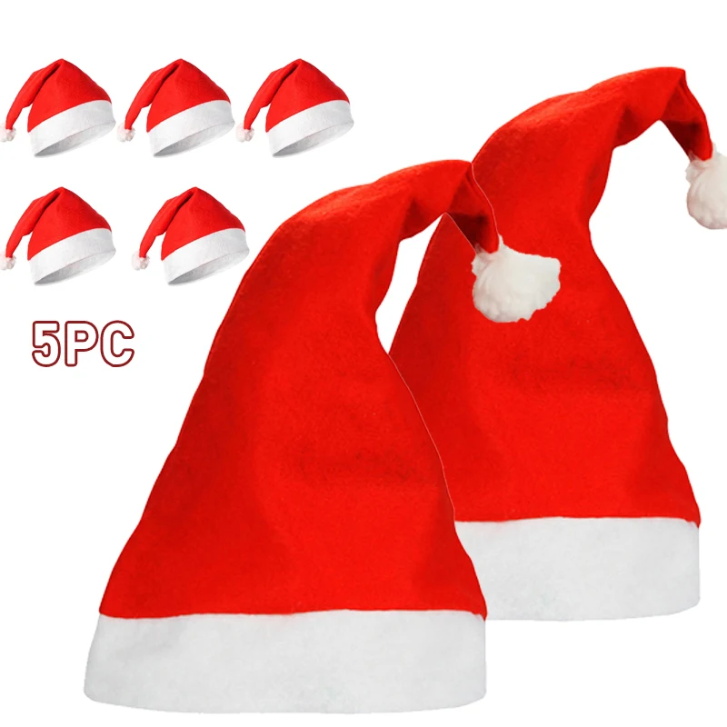 5 шт. Нетканая Рождественская шапка, Рождественский Декор, шапка Санта, головной убор для взрослых, аксессуары для нового года