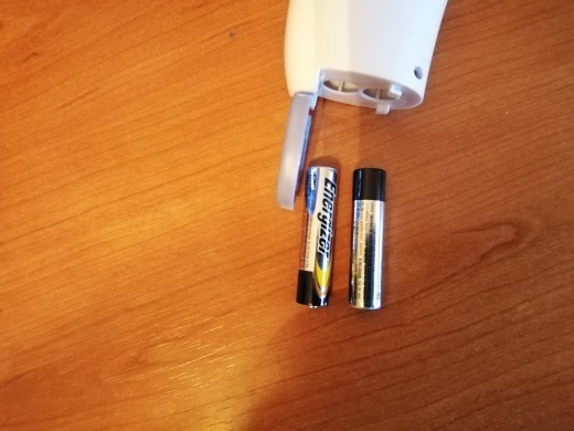 Прибыл менее чем за 10 дней. Работает с 2 батарейками ААА.