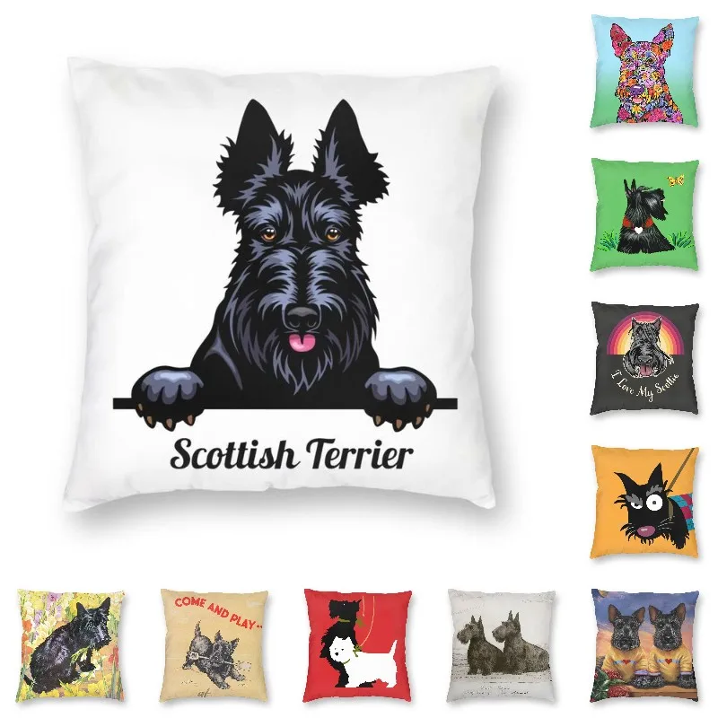 Симпатичная Наволочка на подушку в виде шотландской собаки, полиэстеровый Чехол на подушку с принтом, домашний декор, квадратная Наволочка на подушку для любителей домашних животных, 40x40 см
