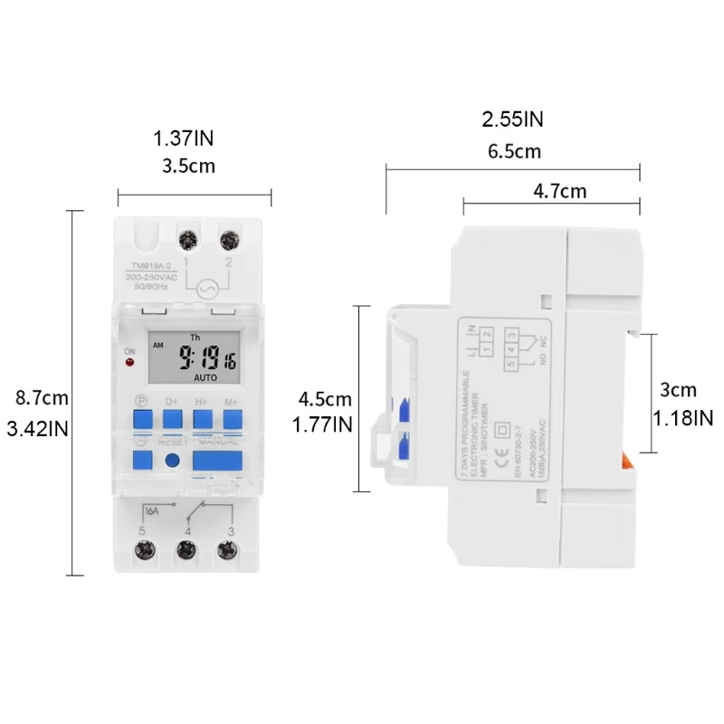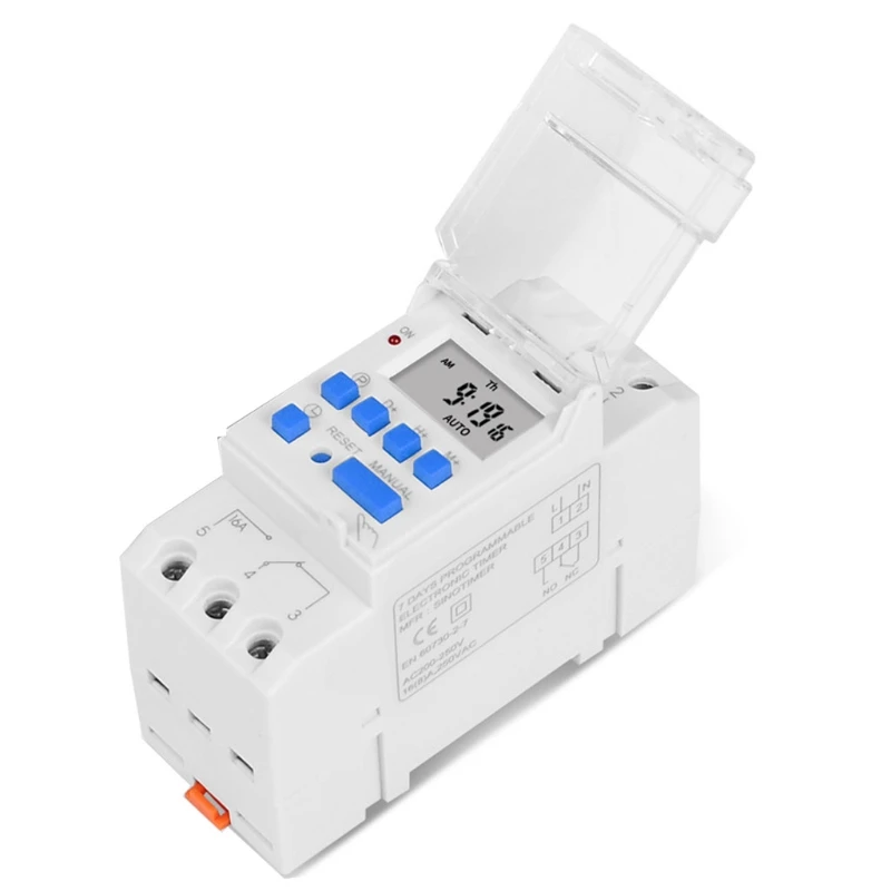 Номинальный ток 16A din-рейка 4 контакта электронное реле времени пассивный выход цифровой таймер 120 В/220 В/24 В/12 В/5 ВOOTDTYОсобенности на 100% абсолютно новый и высокого качестваЛегко читаемый ЖК-дисплей, светодиодный светильник с индикатором.16 программ ВКЛ/ВЫКЛ в день, 15 комбинаций в неделю, ручная установка ВКЛ/ВЫКЛ.Программируемый 24 часа/7 дней в неделю.Замените батарею CR2032, которая используется для резервного копирования памяти при сбое питания (сохраните установленную вами программу).Он очень подходит для домашнего использования и устанавливается на din-рейку 35 мм.Спецификация: расстояние отверстия установки: 60 ммМетод запуска: Пассивный выходДиапазон температур: -20 °C + 50 °CМощность потребление: 4,5 VA (макс)Дисплей: ЖК-дисплейКоммутационный контакт: 1 переключатель переключенияПрограммы: 16 вкл/выкл каждый день или неделюГистерезис 2 сек/день (25 °C)Мини интервал: 1 минЕмкость: 16AЧерный: 60 днейДиапазон таймера: 1 мин ~ 168hrСредняя погрешность: 1s/24h, 25 ° cИсточник питания: 12VDC/AC;120VAC;220VAC;24VDC/AC;5VDC;85-265VACБатарея: CR2032 (в комплекте)Размер: как показано на картинкеПосылка включает в себя: 1x переключатель времени1 руководство на русском, португальском и английском языкахПримечание: 1. Допускается погрешность в 1-2 см из-за ручного измерения, убедитесь, что вы не возражаете перед заказом.2. В связи с разной конфигурацией разных мониторов изображение не отображает фактический цвет товара.