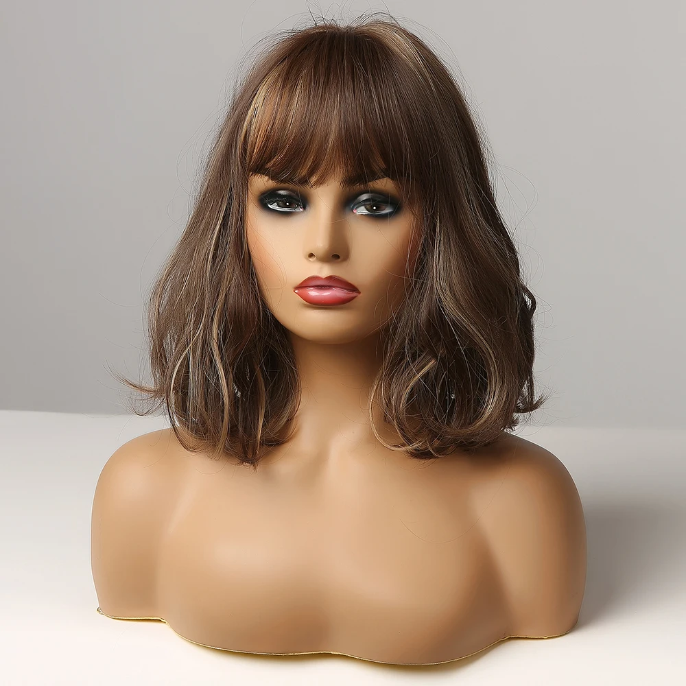 Женский парик с волнистыми длинными волнистыми волосами, с челкой