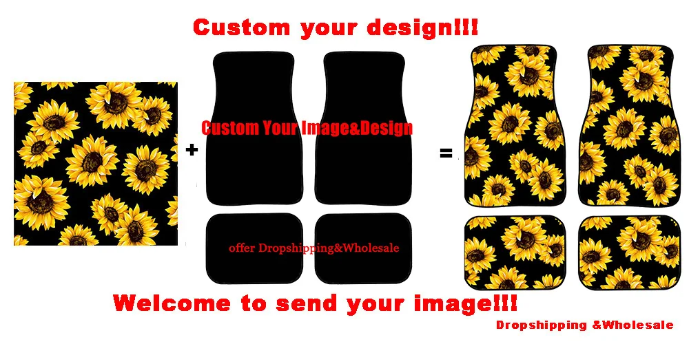 MATERIALS: Made from durable polyester fabric material with rubber backing, Universal fit carpet floor matsAnti-slip Design: Heavy nibbed backing to keep the mats securely in place. Offer protection for your car's interior and safety features for you; Specially designded heel pad and top quality materials ensure your mats will last for many years to comeFeatures: Stain Resistant, easy to install and maintain. Waterproof design and leather make your car cleanDESIGN: Customized personality design, lends an individuality to your carDimensions: 1 set of 4 pcs(2 front mats+2 rear mats), Front mat 68cm x 45cm Rear liner 45cm x 34cm Please Check the Dimensions before Installation