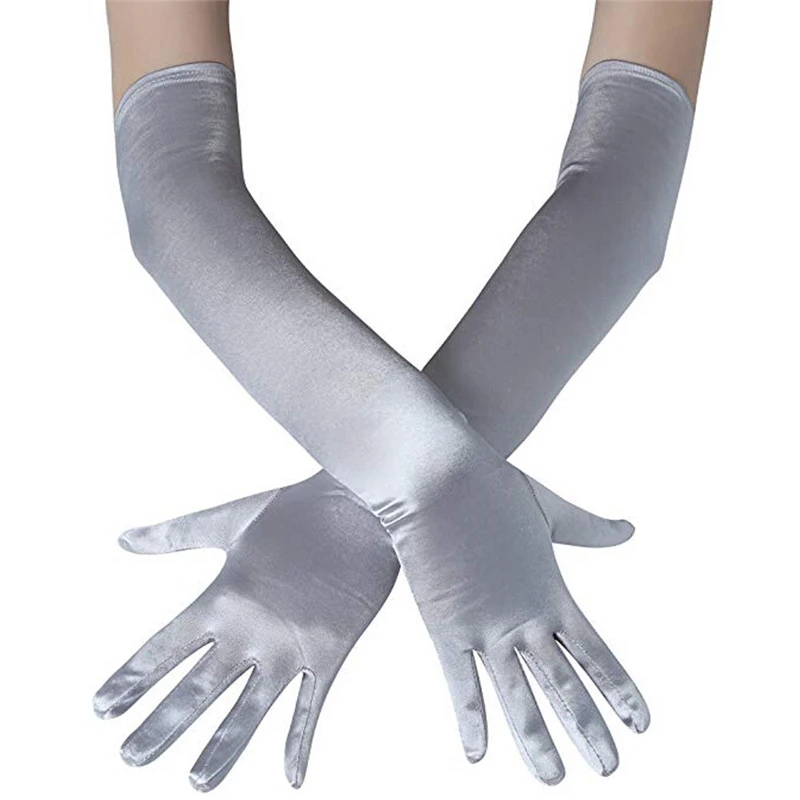Женские атласные длинные перчатки, повседневные модные однотонные перчатки для вечевечерние, выпускного вечера, 2021