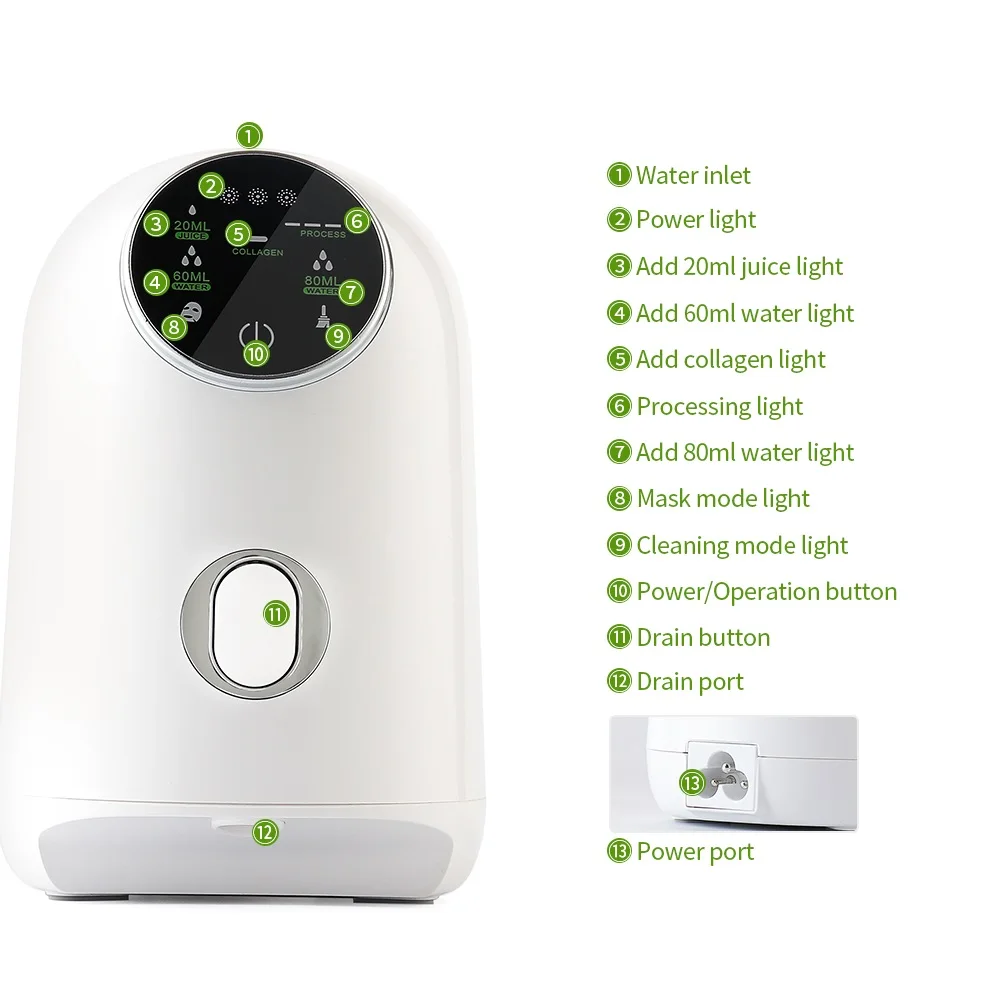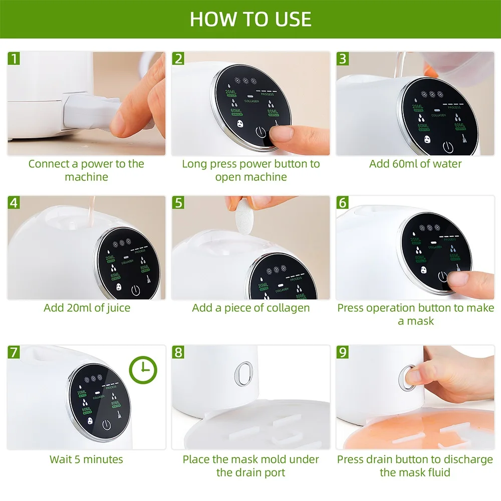 Машинка для изготовления маски для лица с ЖК-дисплеем, электрическая зеленая натуральная овощная коллагеновая самодельная маска для омоложения и ухода
