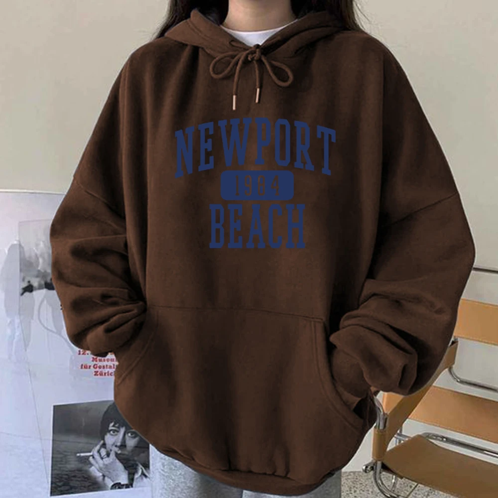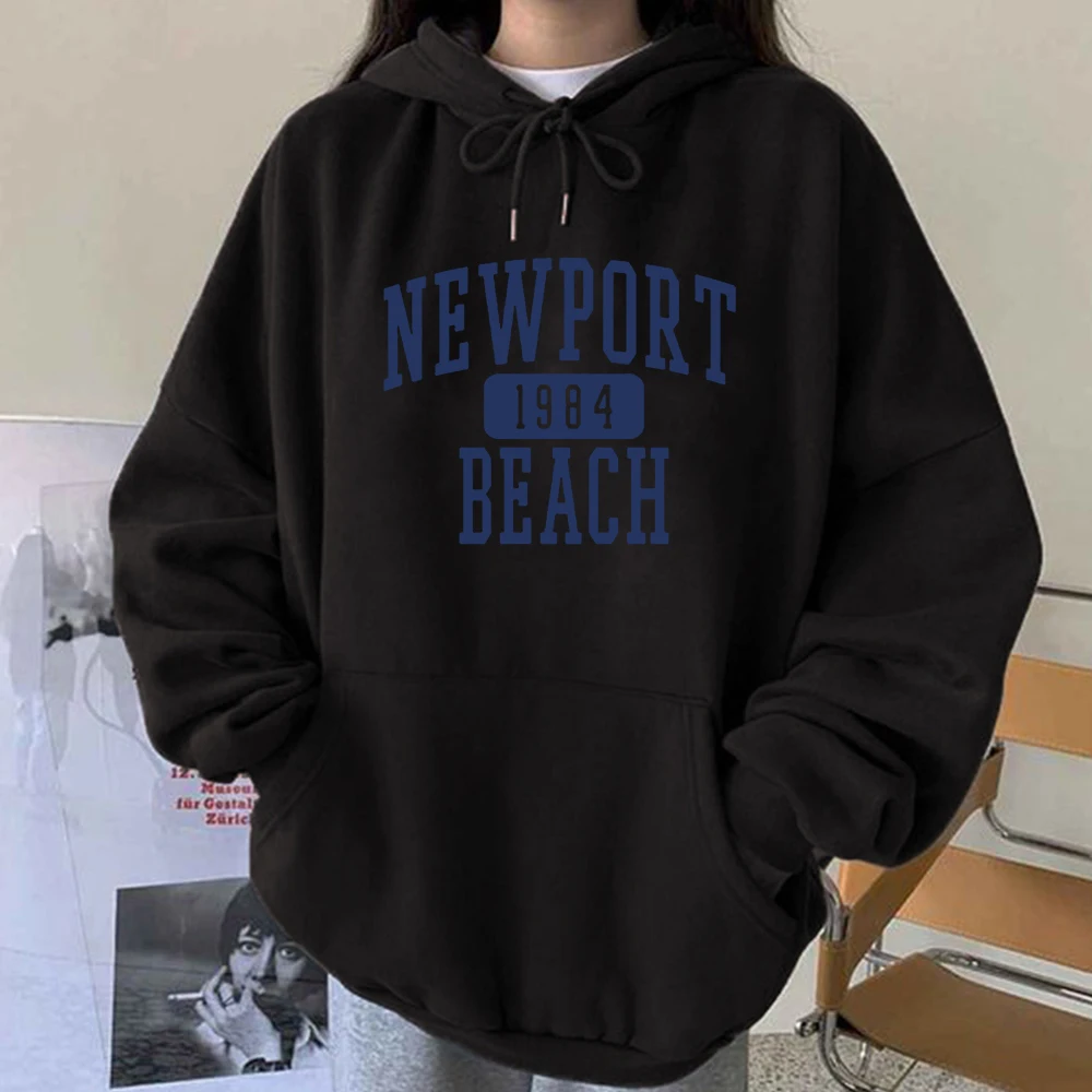 Harajuku, американский стиль, Ньюпорт 1987, пляжный принт, винтажная Женская толстовка с капюшоном, пуловеры, свободный Свитшот оверсайз с открытыми плечами