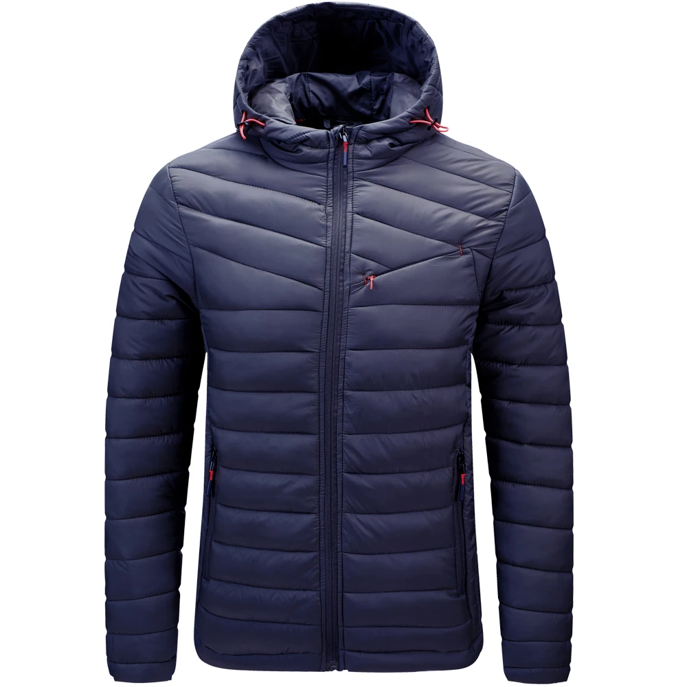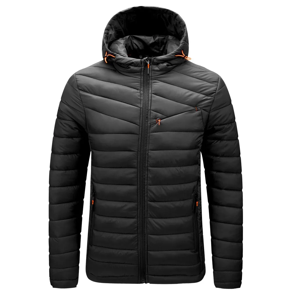 Мужская теплая водонепроницаемая куртка с капюшоном, черная Повседневная приталенная куртка с капюшоном, зима 2021