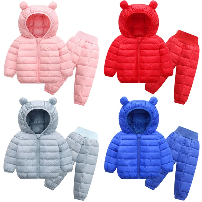 Теплый пуховик с капюшоном для маленьких мальчиков, штаны, одежда, детская зимняя одежда, комплекты, зимний комбинезон, пальто, лыжный костюм для девочек, новинка 2021