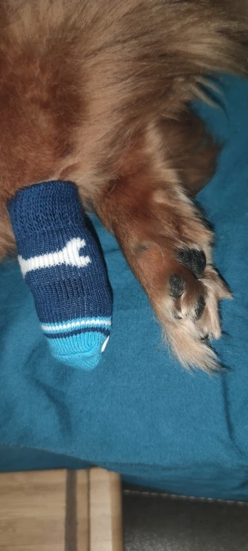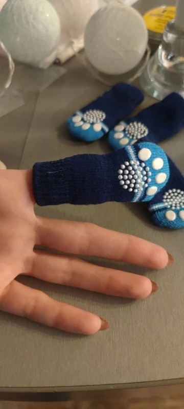 Отличные тапотули. У меня Пекинес 5 кг, брала М, сидит плотно, не жмёт, не слетает. Пройти он в них смог, непривычно ему, но лапами не дёргал, и не скользил. Правда я брала их не для ходьбы, а что бы полечить лапки, зимой соль и реагенты на улице разъедают подушечки, и я делаю ему маски, мажу обильно кремом и лапку в носочек, он не слизывает крем и не пачкает пол и диван. Доставка быстрая, качество отличное, спасибо большое.
