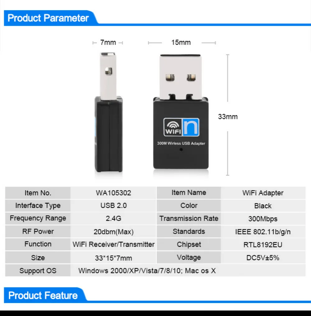 300 Мбит/с 11N мини USB wifi адаптер позволяет вашему старому ноутбуку/настольному компьютеру обновитьСкорость wi-fi и Наслаждайтесь высокоскоростным серфингом.