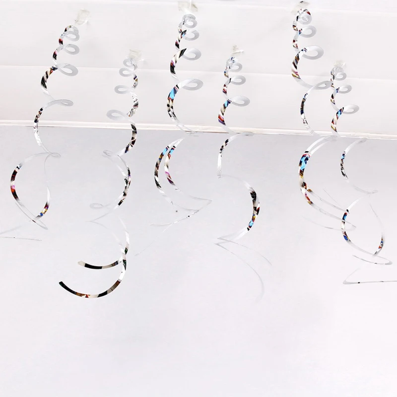 6 шт. Разноцветные Спиральные подвесные сверкающие украшения праздничные Свадебные Ленточные стримеры украшения для Хэллоуина рождественской вечеринки