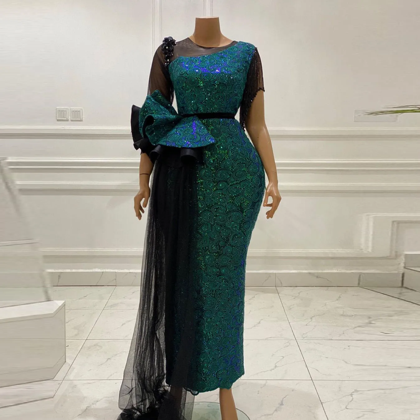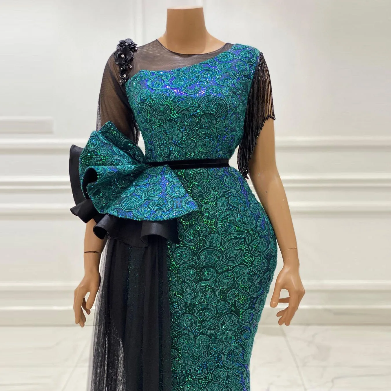 Блестящие кружевные вечерние платья на одно плечо с оборками баской с прозрачным вырезом платье-Русалка для выпускного вечера с кисточками Aso Ebi женские платья