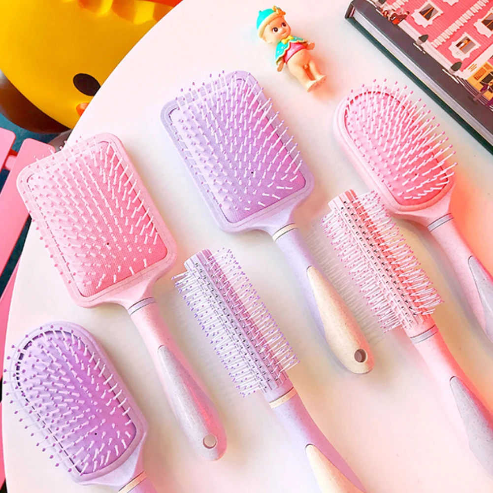 Женская расческа розовая, милый инструмент для укладки длинных волос с воздушной подушкой, с кудрявыми сердечками, для девушек