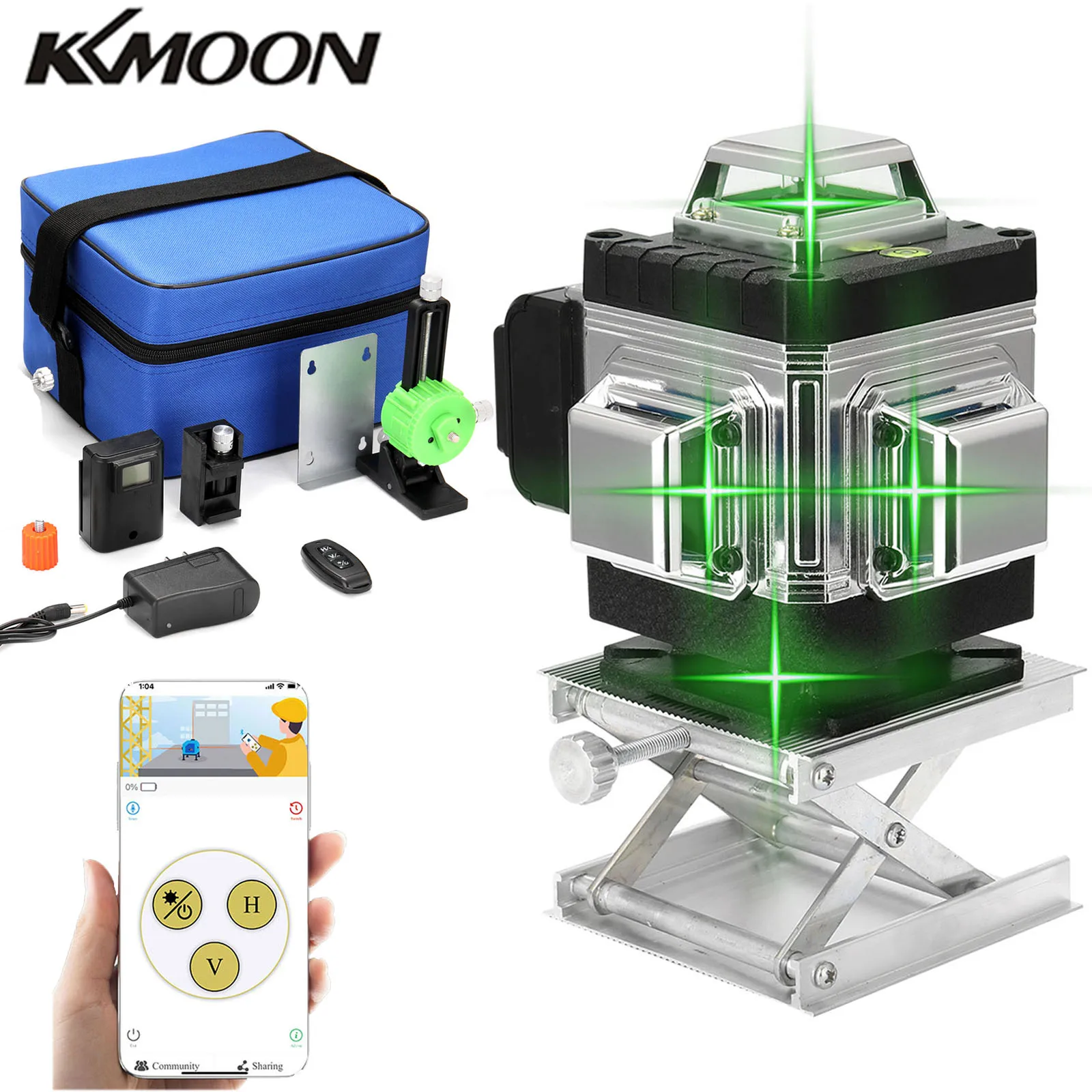 Многофункциональный лазерный уровень KKMOON al 4D с 16 линиями, устройство управления через приложение, самовыравнивающийся лазер 360 с профессиональными аксессуарами