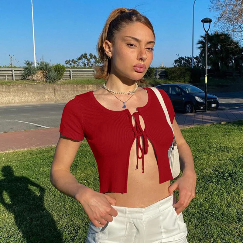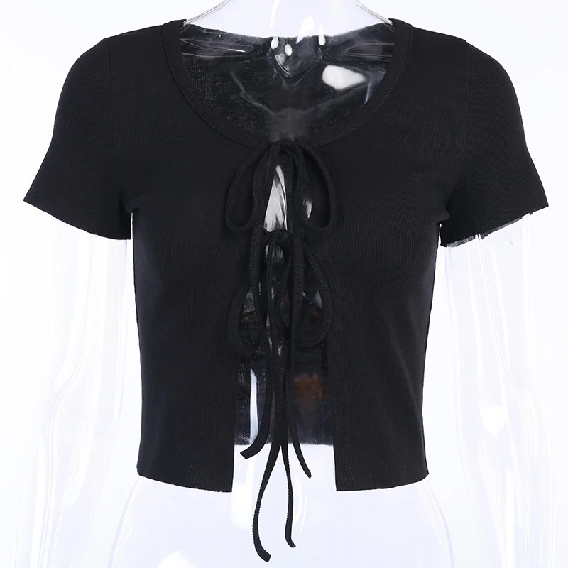 Женский укороченный топ на шнуровке, облегающий топ с коротким рука...
