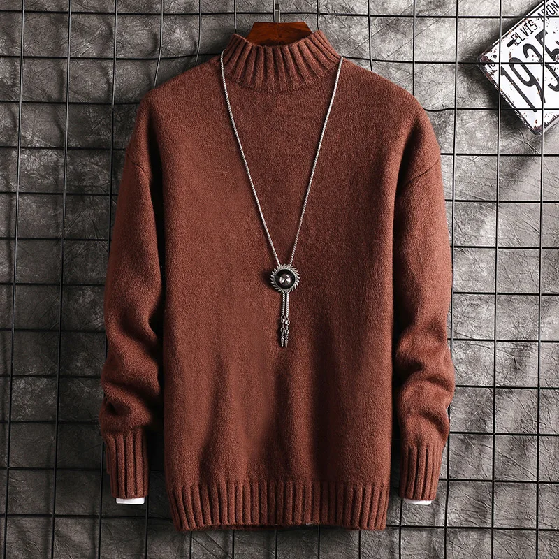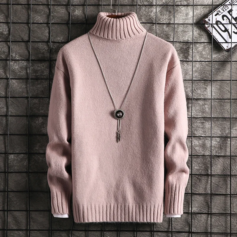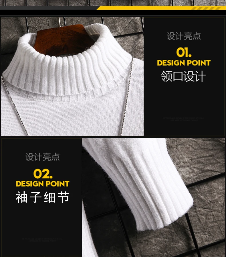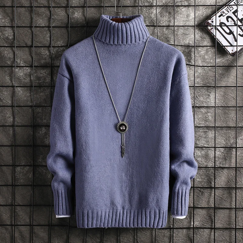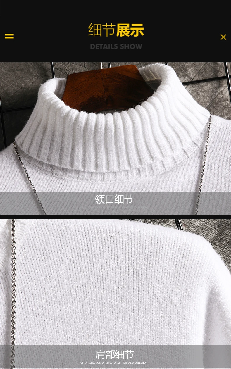 Новинка 2021, зимний мужской вязаный свитер высокого качества, мужской облегающий пуловер с высоким воротом, мужской плотный теплый кашемировый свитер для мужчин