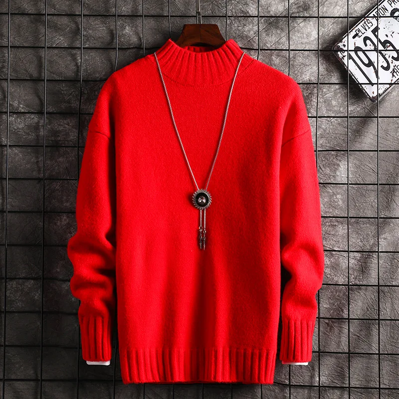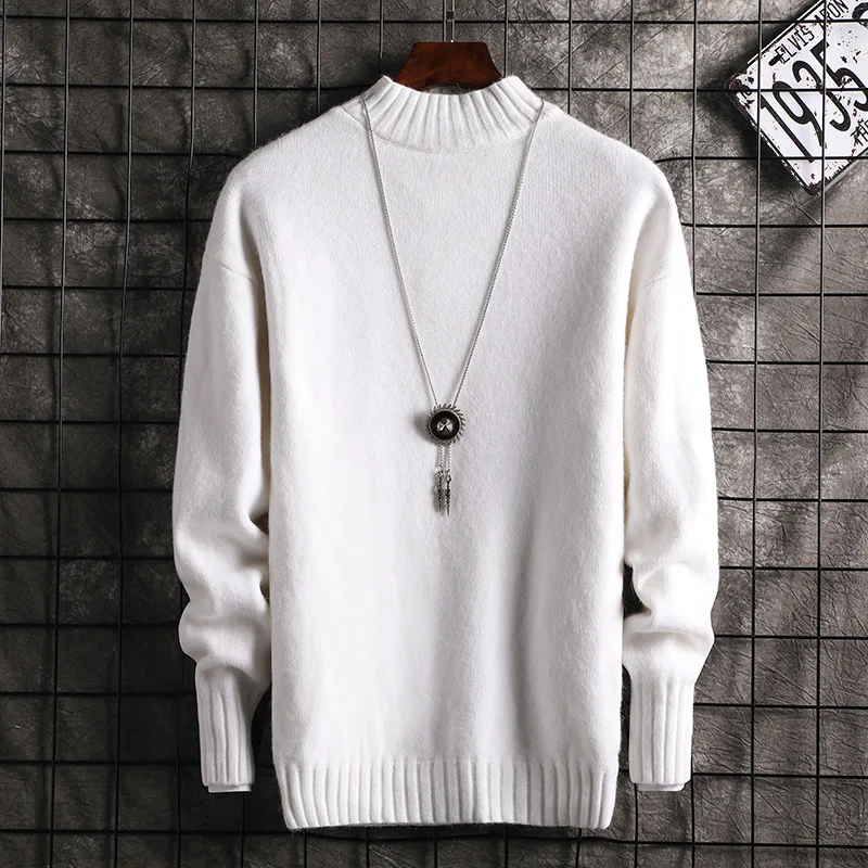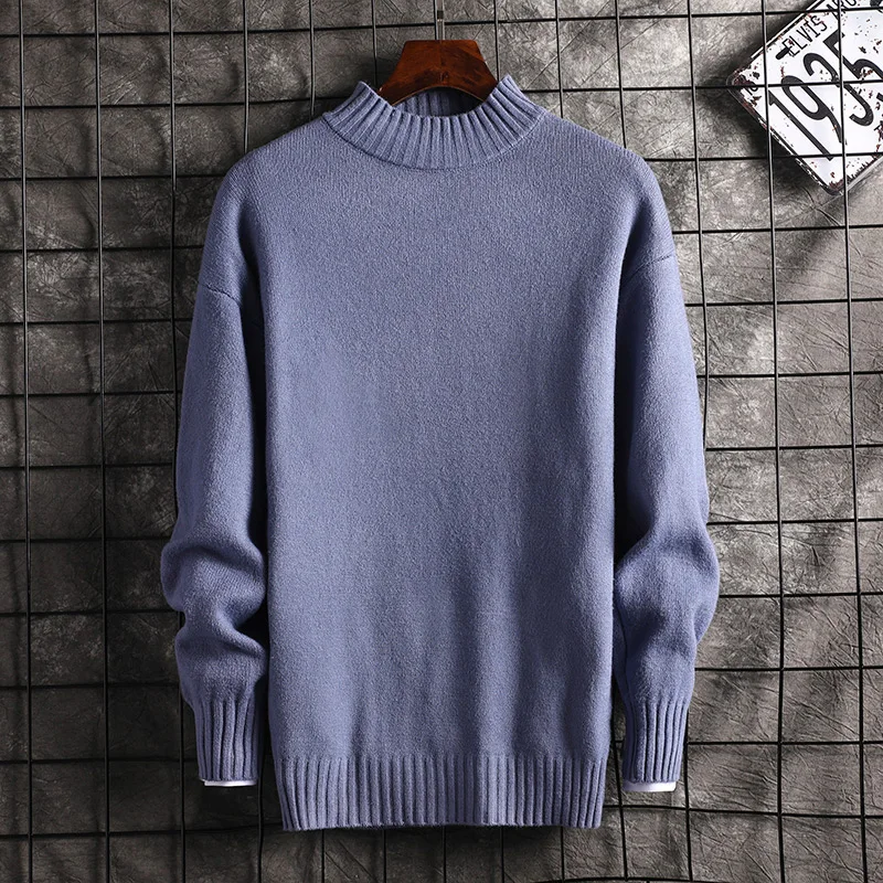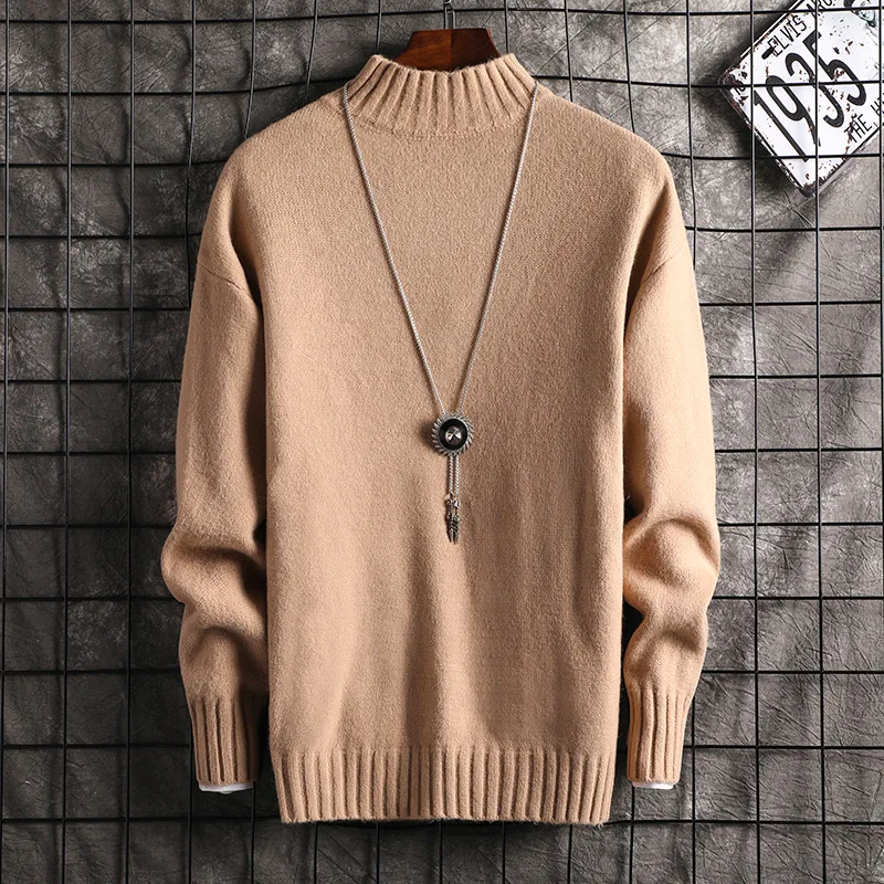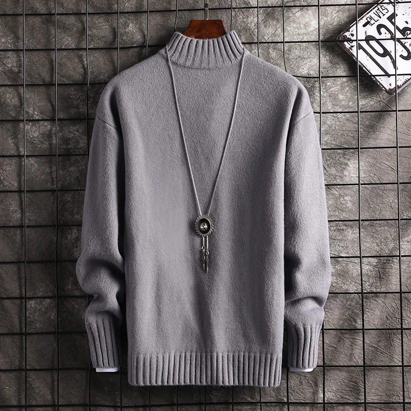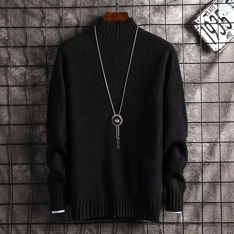 Новинка 2021, зимний мужской вязаный свитер высокого качества, мужской облегающий пуловер с высоким воротом, мужской плотный теплый кашемировый свитер для мужчин