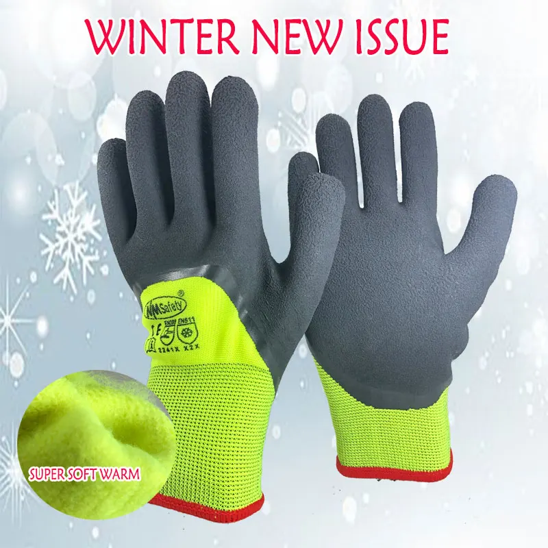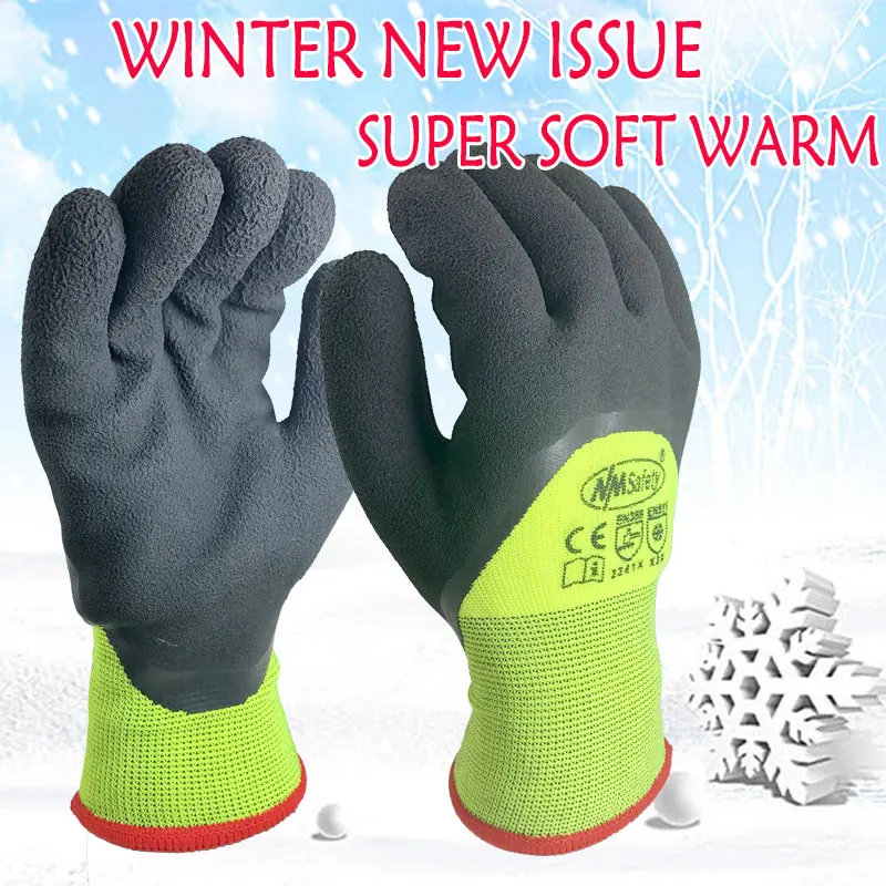 13 калибровочный нейлон и 7 калибровочный трикотажный подгузник акриловый вкладыш с латексным покрытием на ладони, ветронепроницаемые морозостойкие, домашние теплые зимние рабочие перчатки.
