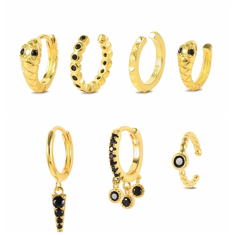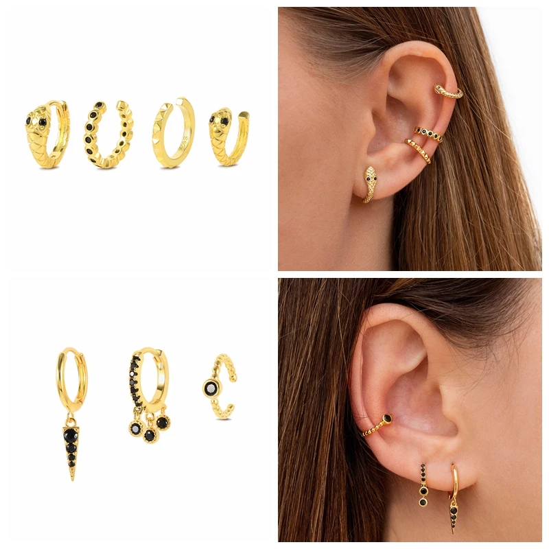 Женские серьги с черным цирконием MC, набор из стерлингового серебра 925 пробы, серьги-обручи, 3 шт./компл.