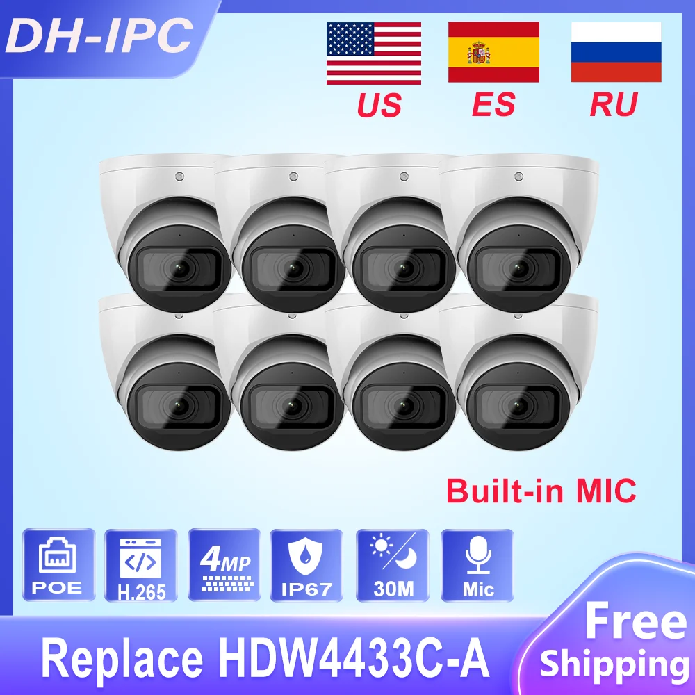 Dahua 4MP IP камера IPC-HDW4433C-A POE сетевая Мини купольная камера со встроенным микро CCTV камера обеспечения безопасности камера 8 шт