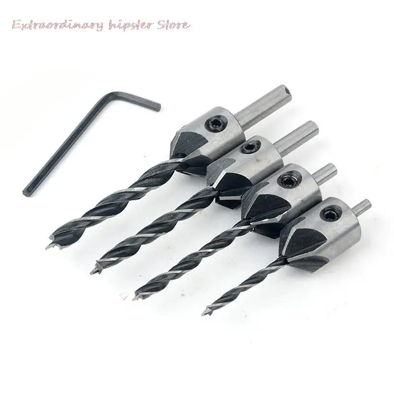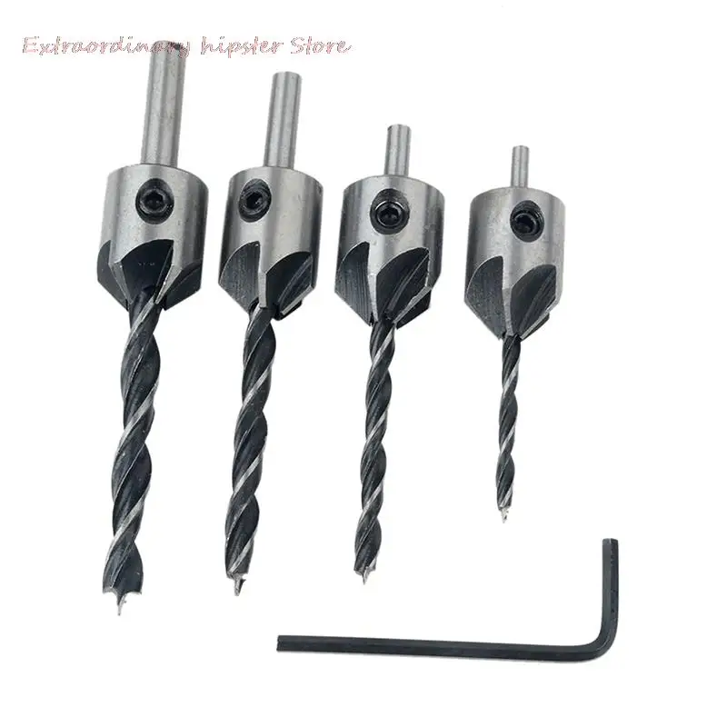 Specification: Brand new Color: as picture shows Material: HSS drill 4241 Black chamfer drill body material: steel #45 Diameter of Chamfer: 15.8mm Shank: 1/4 hex shank Size(approx. ): 3mm x 60mm(L) / 4mm x 75mm(L) / 5mm x 85mm(L) / 6mm x 93mm(L)Four piece set includes bits for drilling pilot holes for screw sizes 3mm, 4mm, 5mm, 6mmSpecial designed steel counter sleeve countersinks or counter bores pilot holeAdjustable counter sleeve depth with wrenchDrill and countersink for wood screws without changing bitsDrilling length can be adjusted for various length screws simply by loosening and tightening the setscrewChamfer is 5 flutes, in the process of using, can discharge the wood more rapid, sink hole disposable drilled smooth, screw cap perfect embedded in the surface of workpiecePackage included: 4pcs x woodworking chamfer 1pc x hex shank Note: Please allow0.5-1cm errors due to manual measurement Item color displayed in photos may be showing slightly different on your computer monitor since monitors are not calibrated same