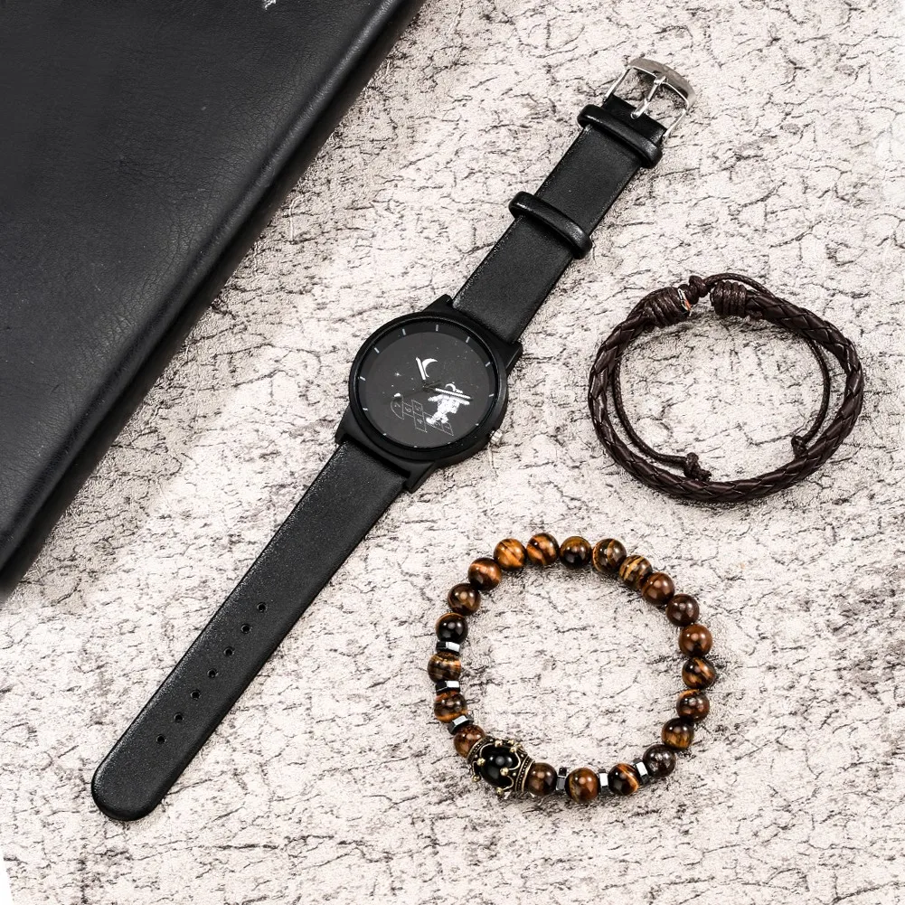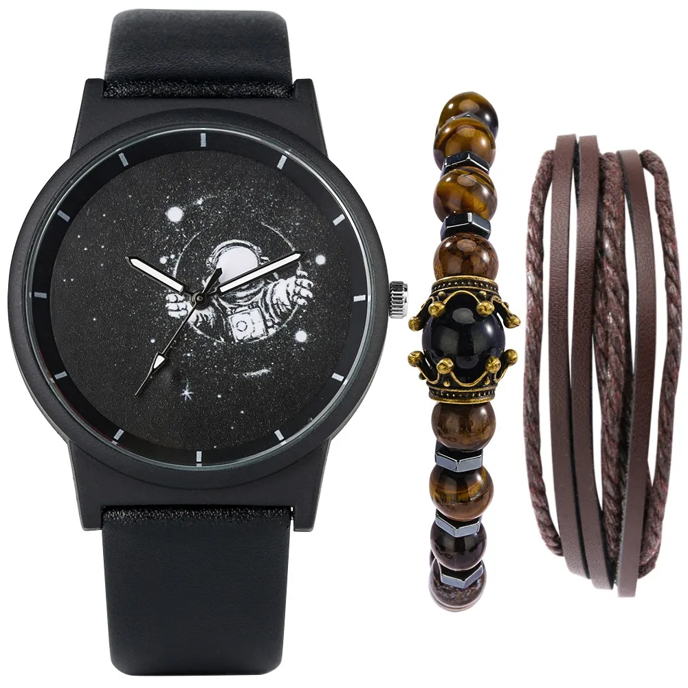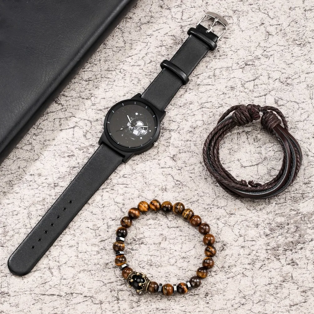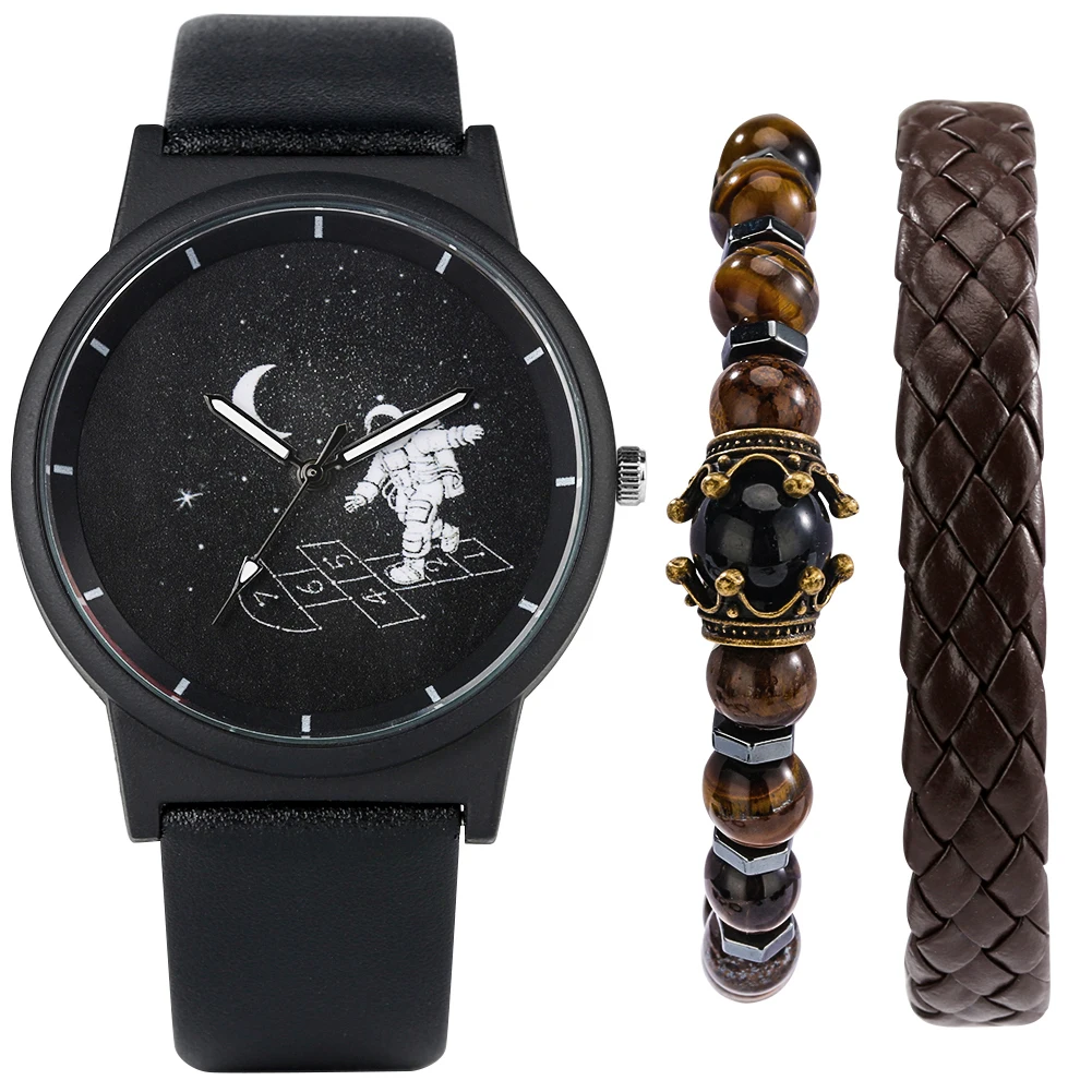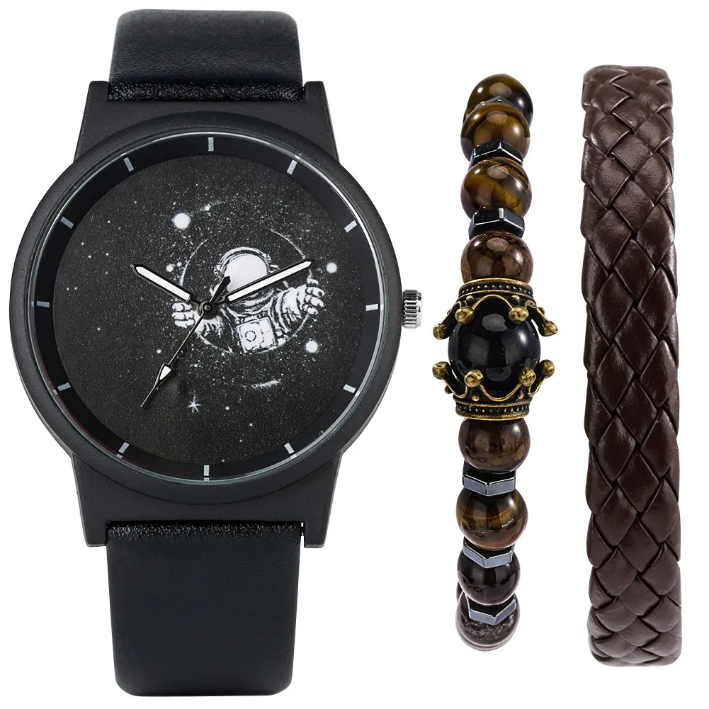 3 шт., мужские кварцевые часы с браслетом и кожаным ремешком