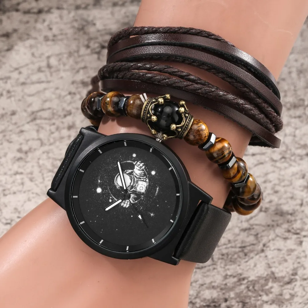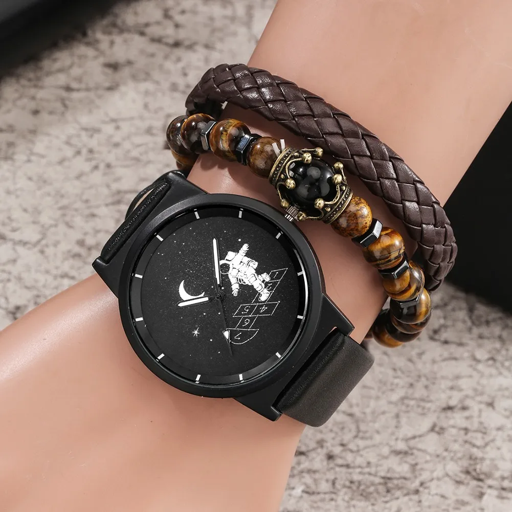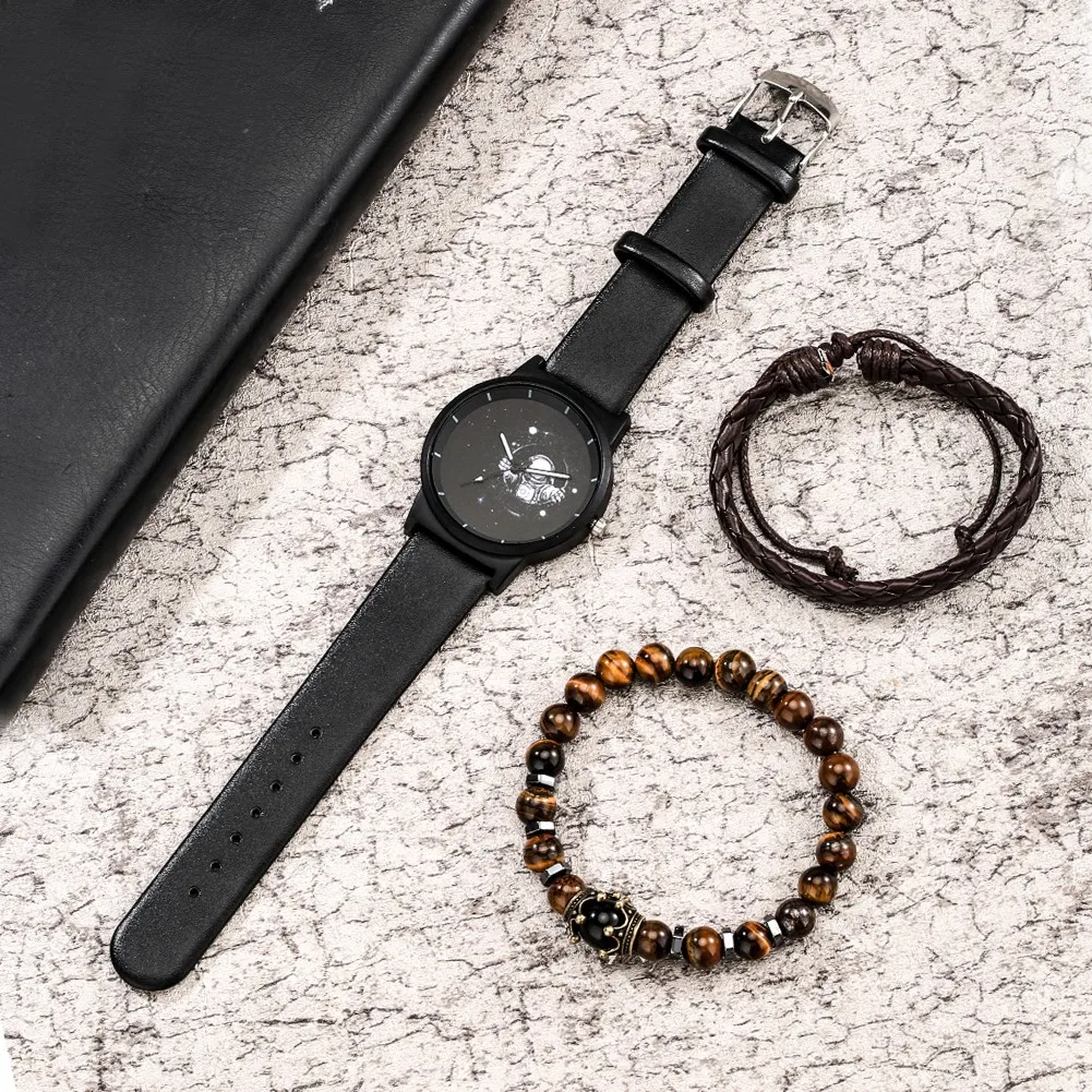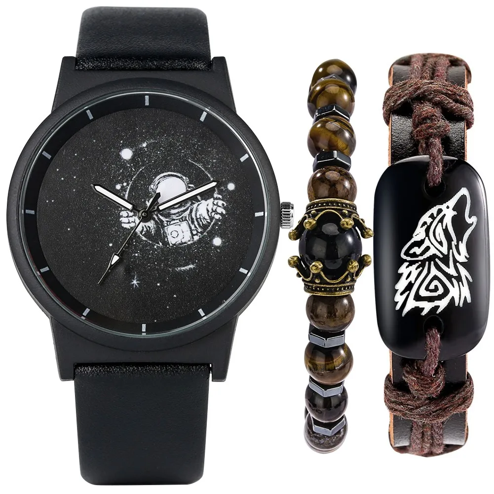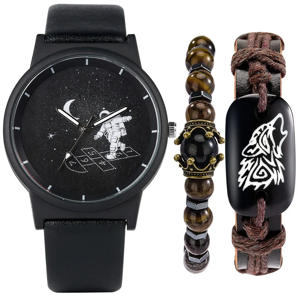 3 шт., мужские кварцевые часы с браслетом и кожаным ремешком
