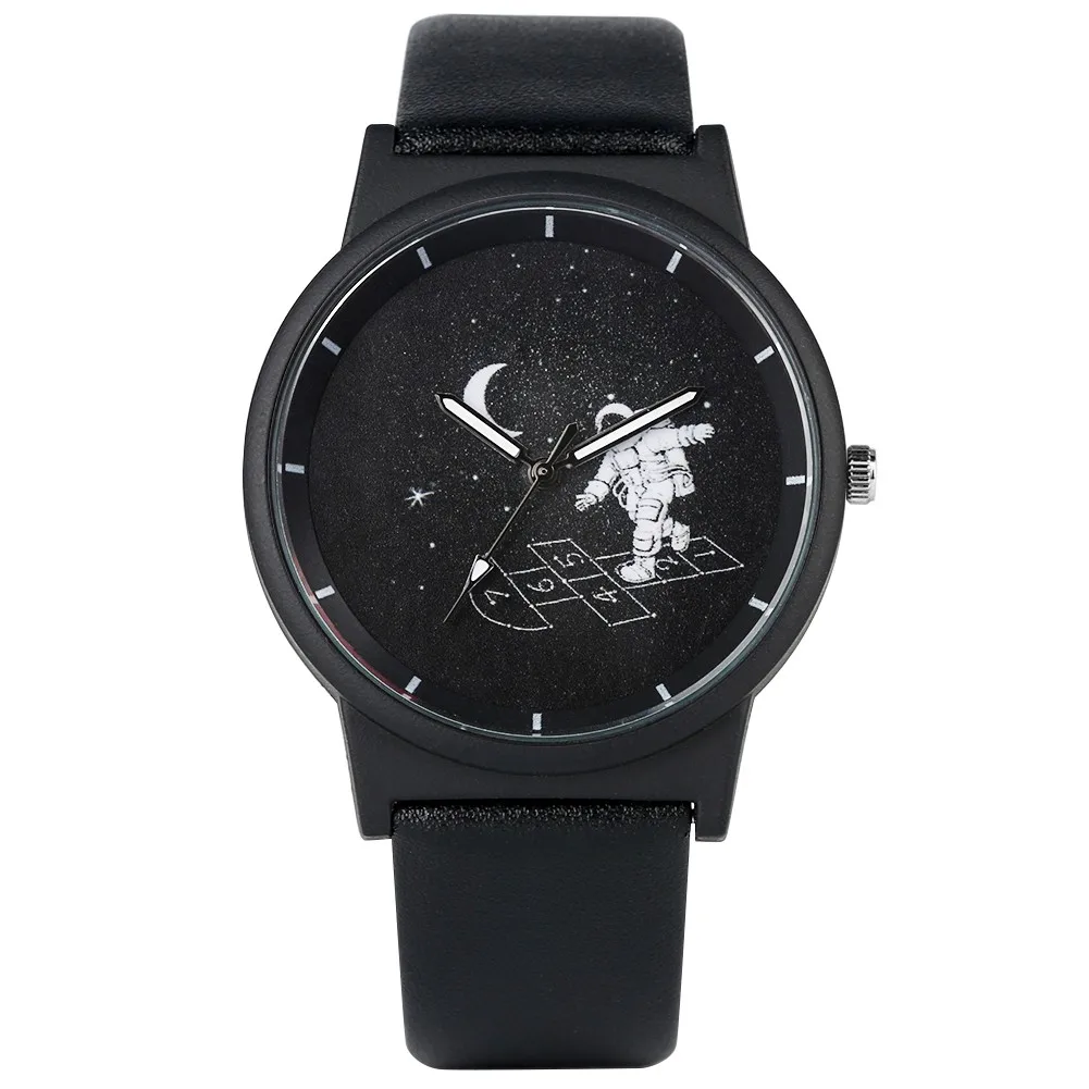 Мужские кварцевые часы с браслетом из бисера и кожаным ремешком
