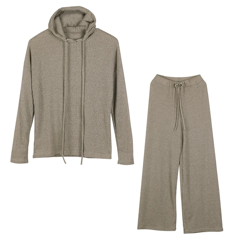 Осенние вязаные спортивные костюмы, женские подходящие комплекты, толстовка с длинным рукавом + широкие штаны, домашняя одежда, свитер, комплект из двух предметов