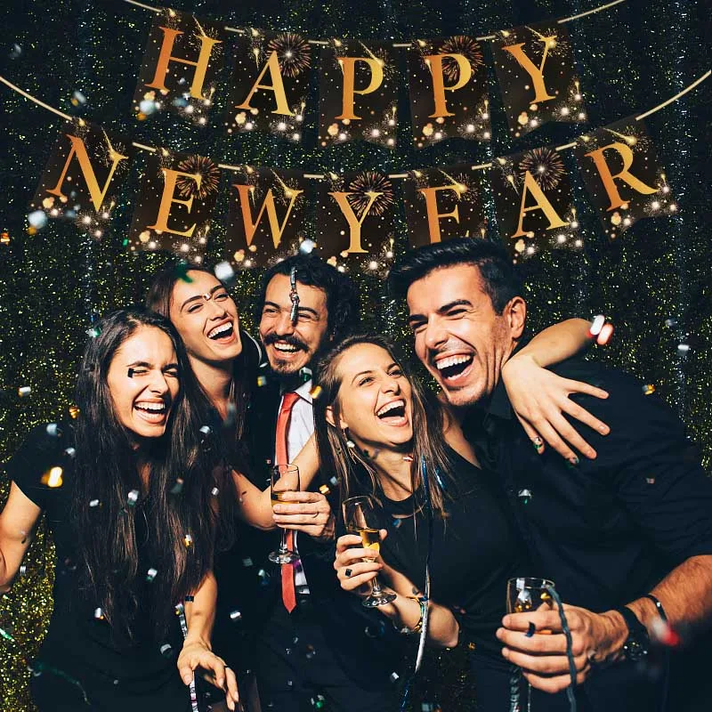 Украшение для новогодней вечерние НКИ, 2022, золотой, черный баннер, одноразовая посуда, реквизит, рождественские украшения для дома