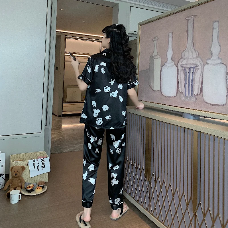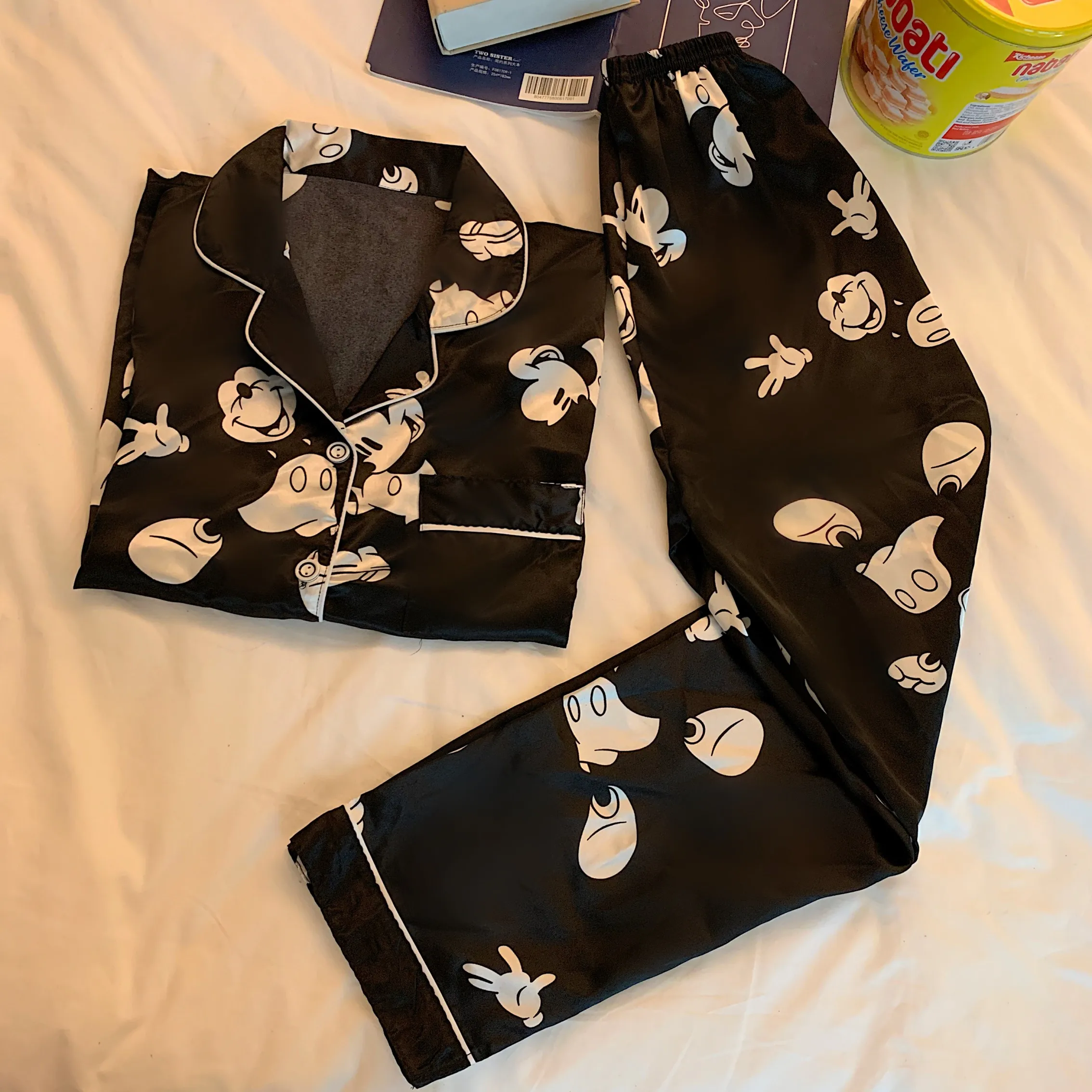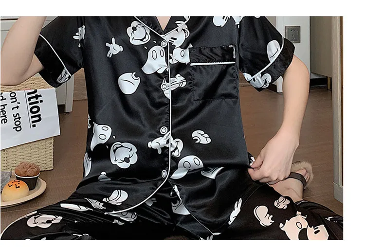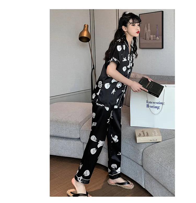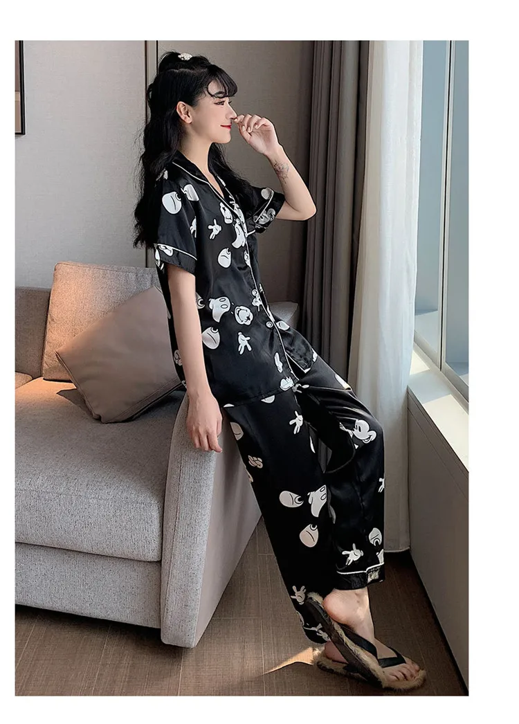 Атласная пижама, милая Пижама, ночная рубашка, одежда для сна, осенняя Домашняя одежда, топы и брюки, Женская шелковая пижама Микки, пижама мышь, Женский комплект