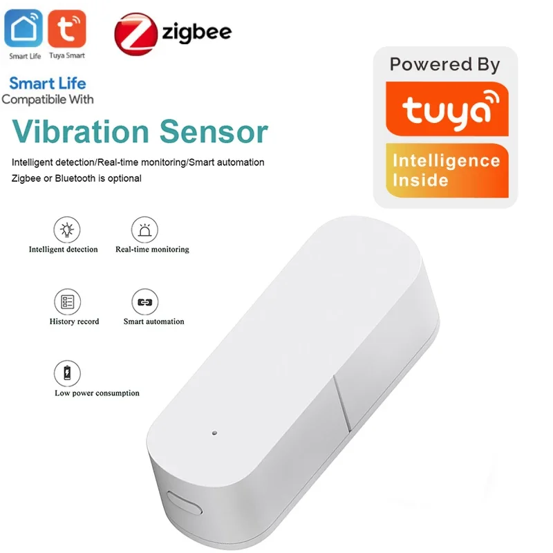 Смарт-датчик вибрации Tuya Zigbee, датчик с защитой в режиме реального времени, с Push-уведомлением и синхронизацией состояния, с помощью приложения Smartlife, для домашней безопасности