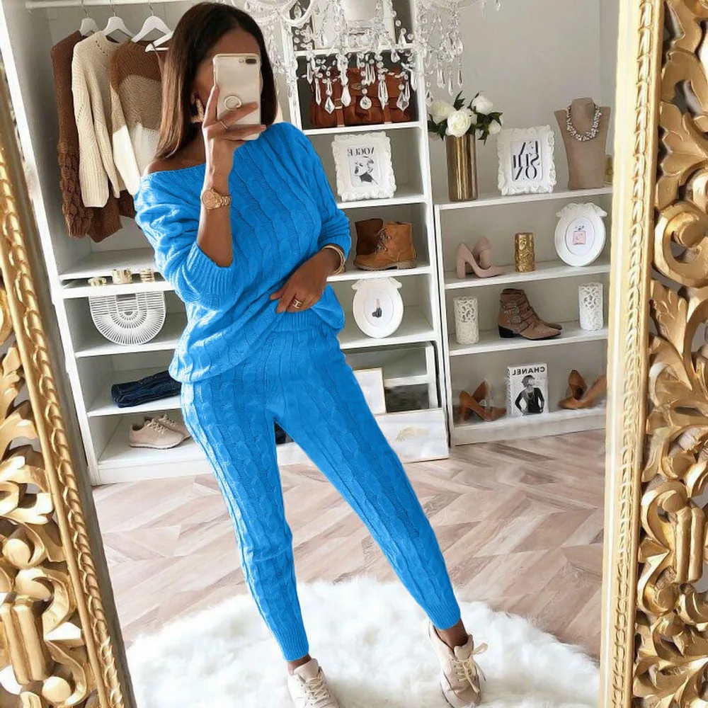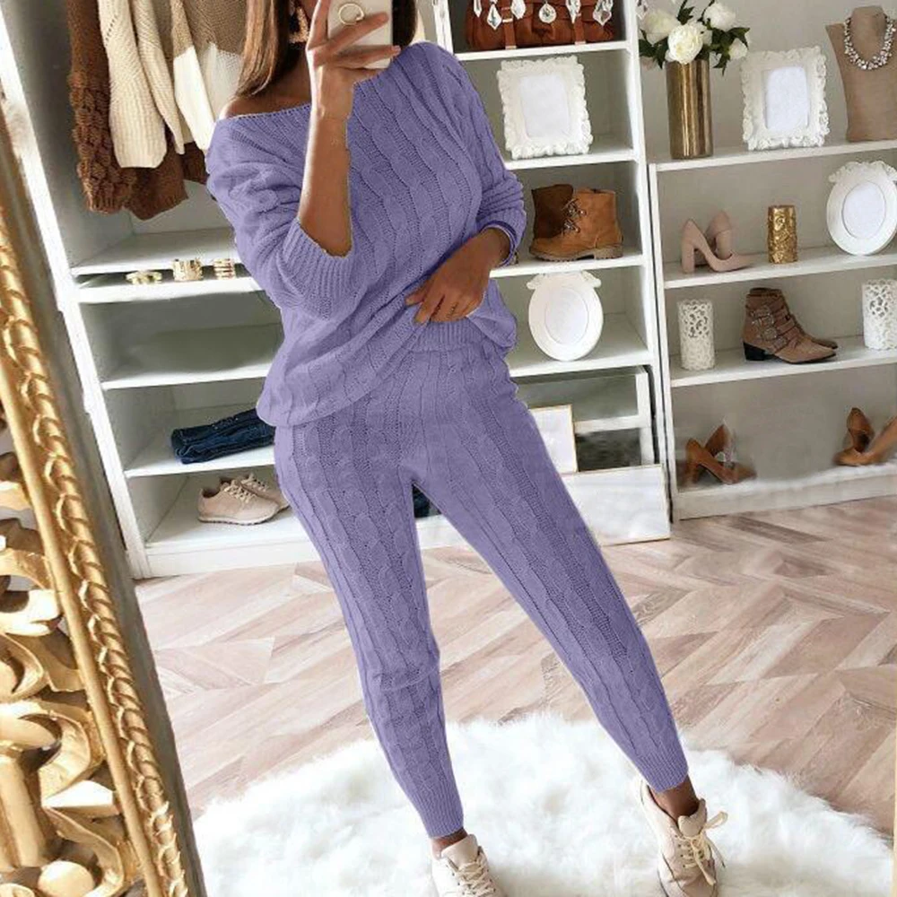 Трикотажный свитер и брюки Muyogrt, комплект из двух предметов, Женский облегающий укороченный топ, женский свитер и брюки, комплект из двух предметов, женская одежда, спортивный костюм