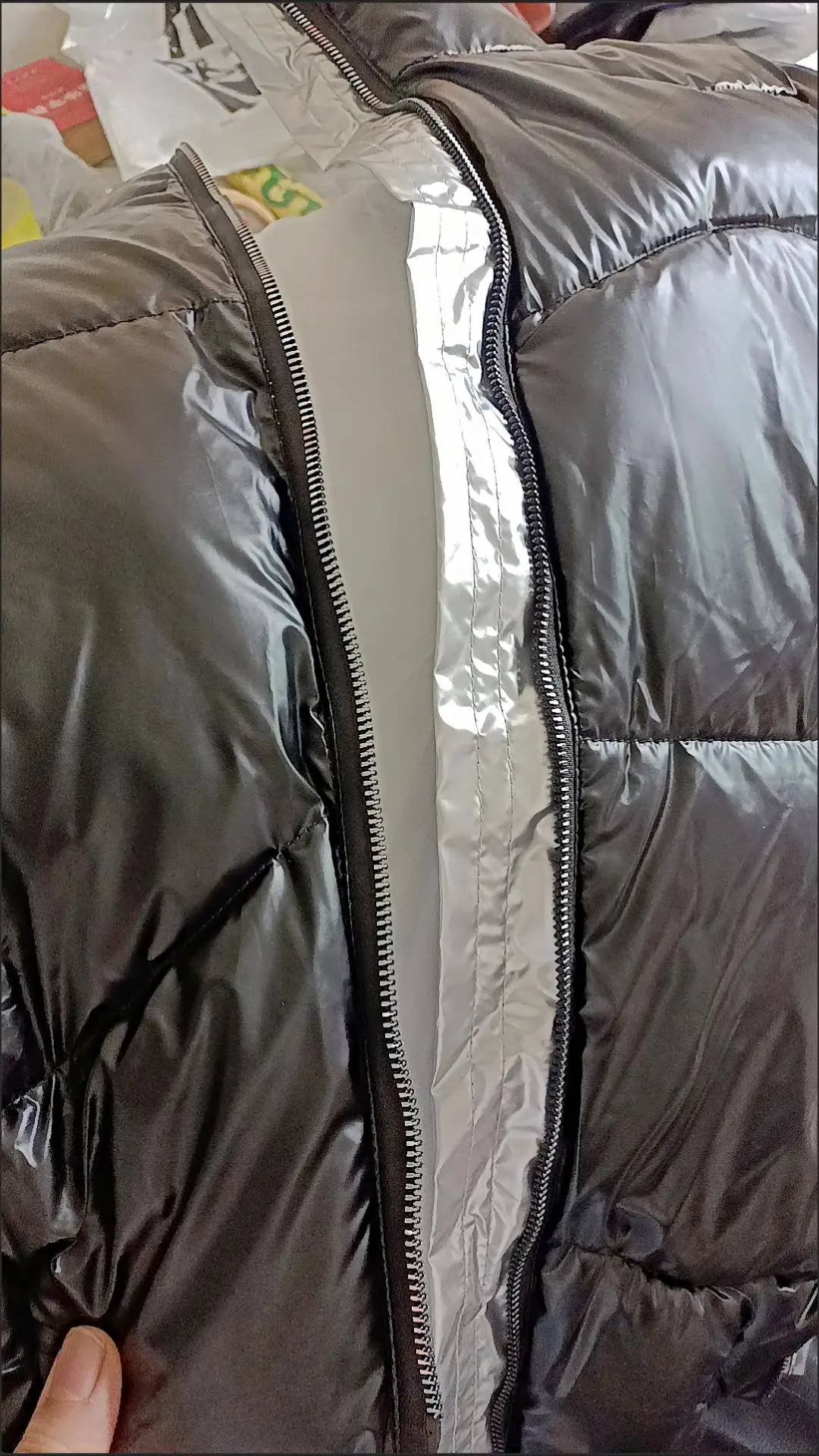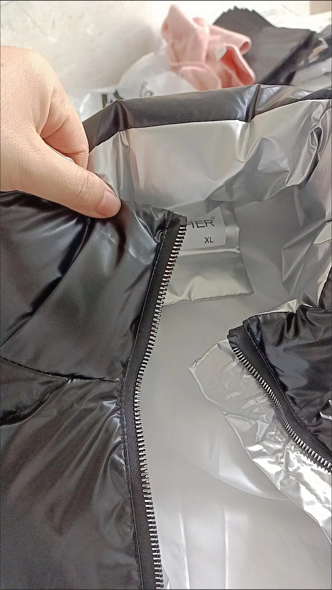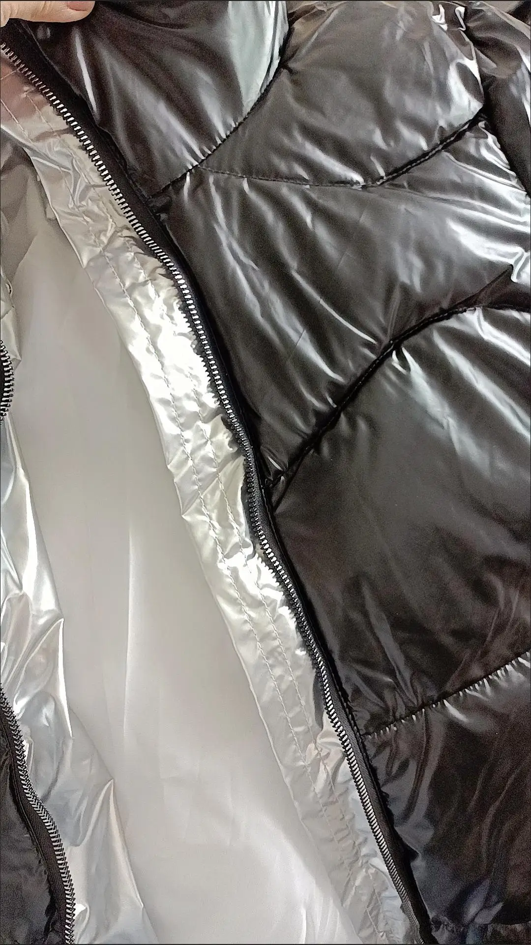 Блестящая металлическая женская зимняя куртка на молнии с карманами...