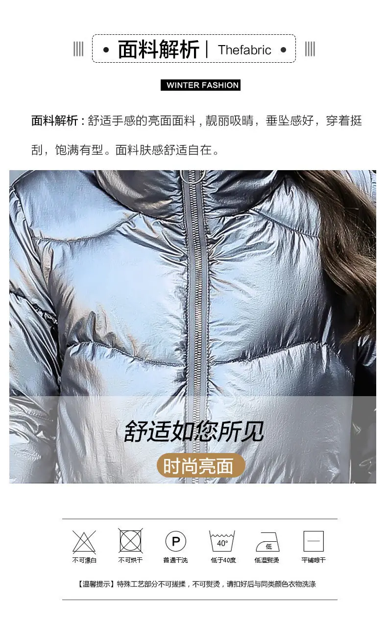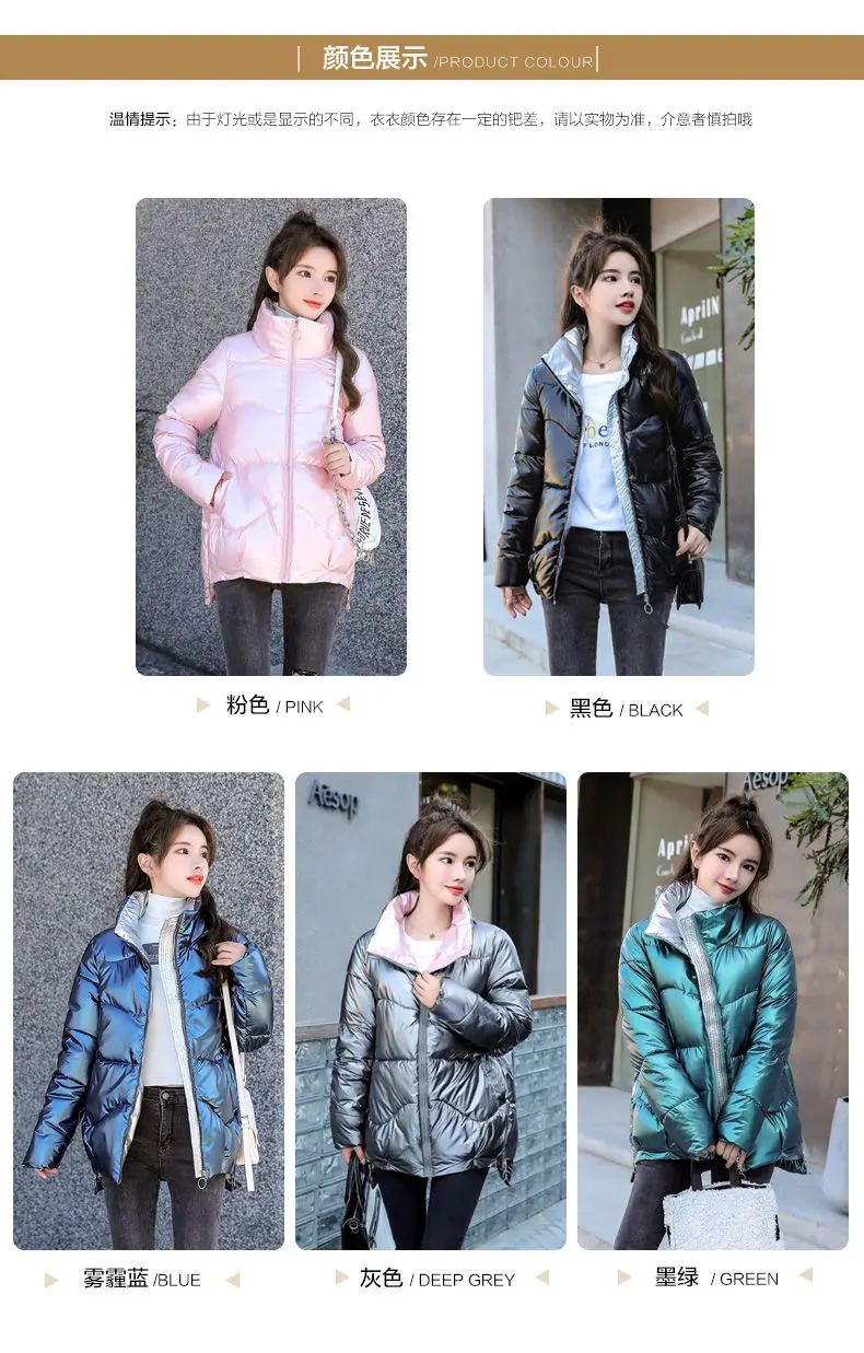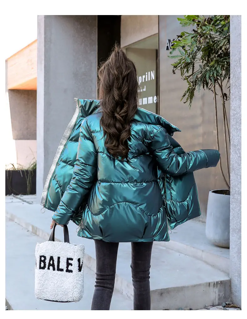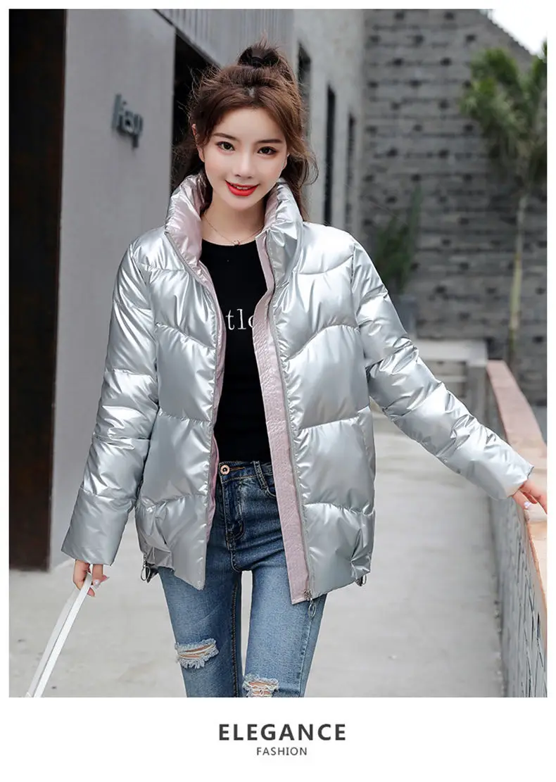Женский короткий пуховик, зимняя Блестящая Серебристаячернаязеленая...