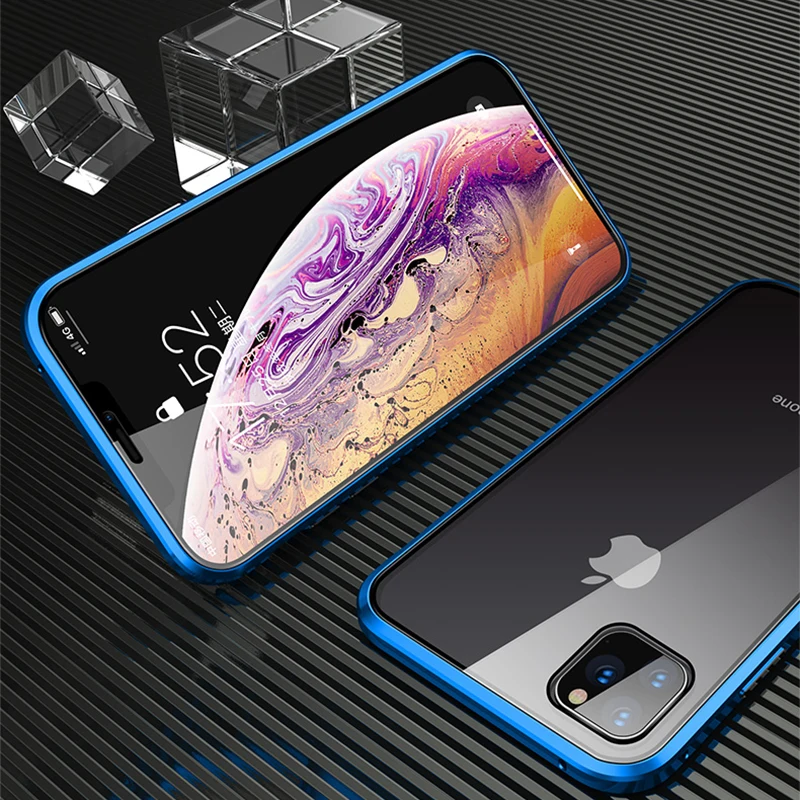 Магнитный металлический чехол для iPhone 13, 12, 11 Pro, XS Max, X, XR, двусторонний стеклянный чехол для iPhone 7, 8 Plus, SE 360, 2020